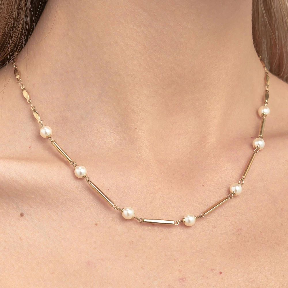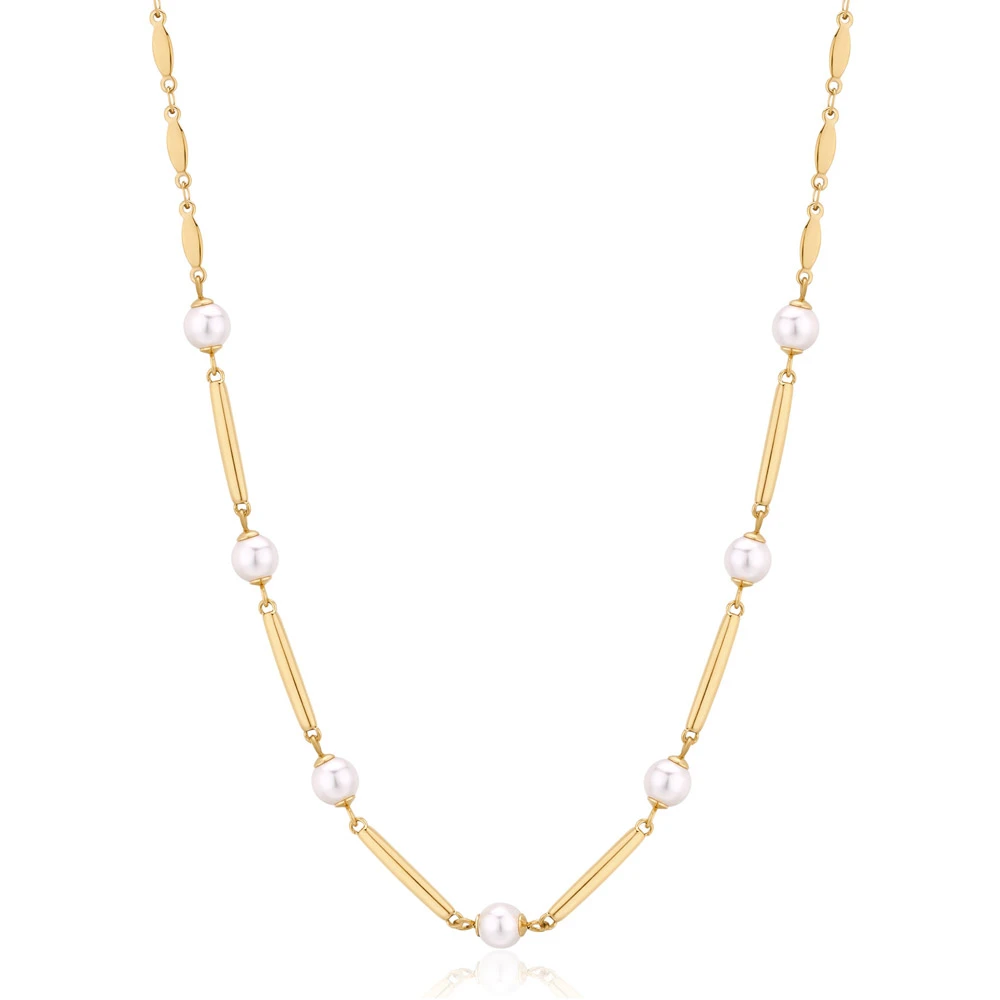 Dámský náhrdelník z chirurgické oceli 316L z kolekce Affinity. Povrch náhrdelníku je pozlacený technologií PVD. Po celé délce jsou do náhrdelníku zasazené umělé perly. Délka náhrdelníku 47cm.