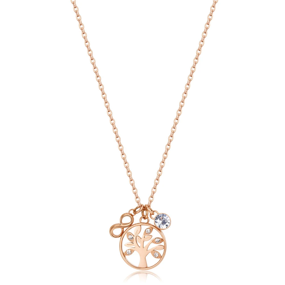 Dámský náhrdelník z chirurgické oceli 316L z kolekce Chakra. Náhrdelník s přívěskem stromu života. Povrch náhrdelníku je pozlacený technologií PVD. Náhrdelník je zdobený bílými krystaly. Délka náhrdelníku 44cm.