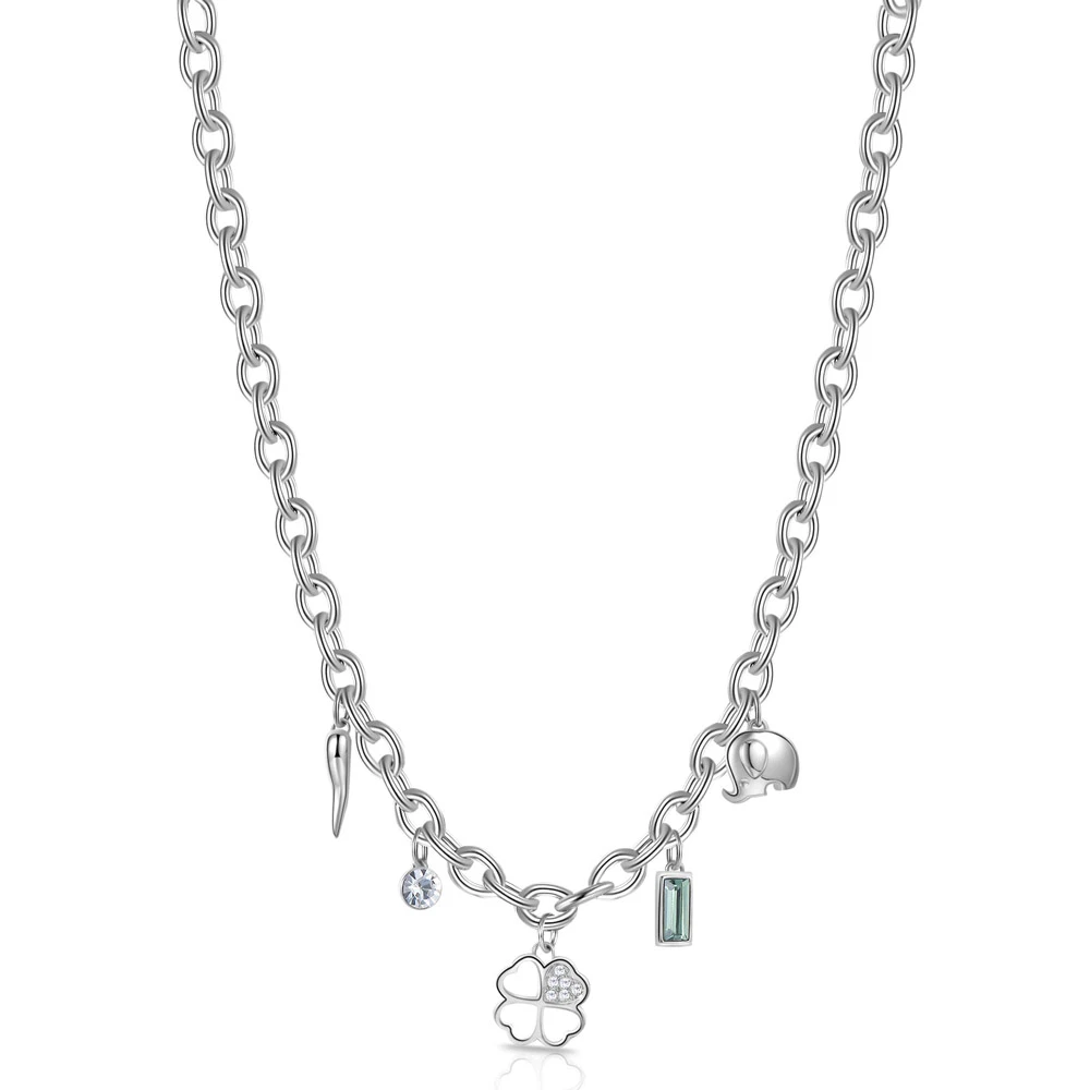 Dámský náhrdelník z chirurgické oceli 316L z kolekce Chakra. Náhrdelník je zdobený přívěšky a tyrkysovými kamínky. Délka náhrdelníku 45 cm.