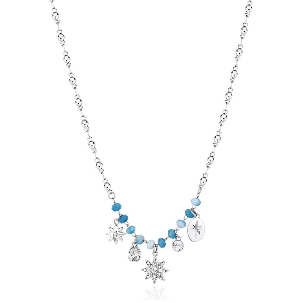 Dámský náhrdelník z chirurgické oceli 316L z kolekce Chakra. Povrch náhrdelníku je leštěn zdobený krystaly a korálky z přírodních minerálů.. Délka náhrdelníku 48cm.