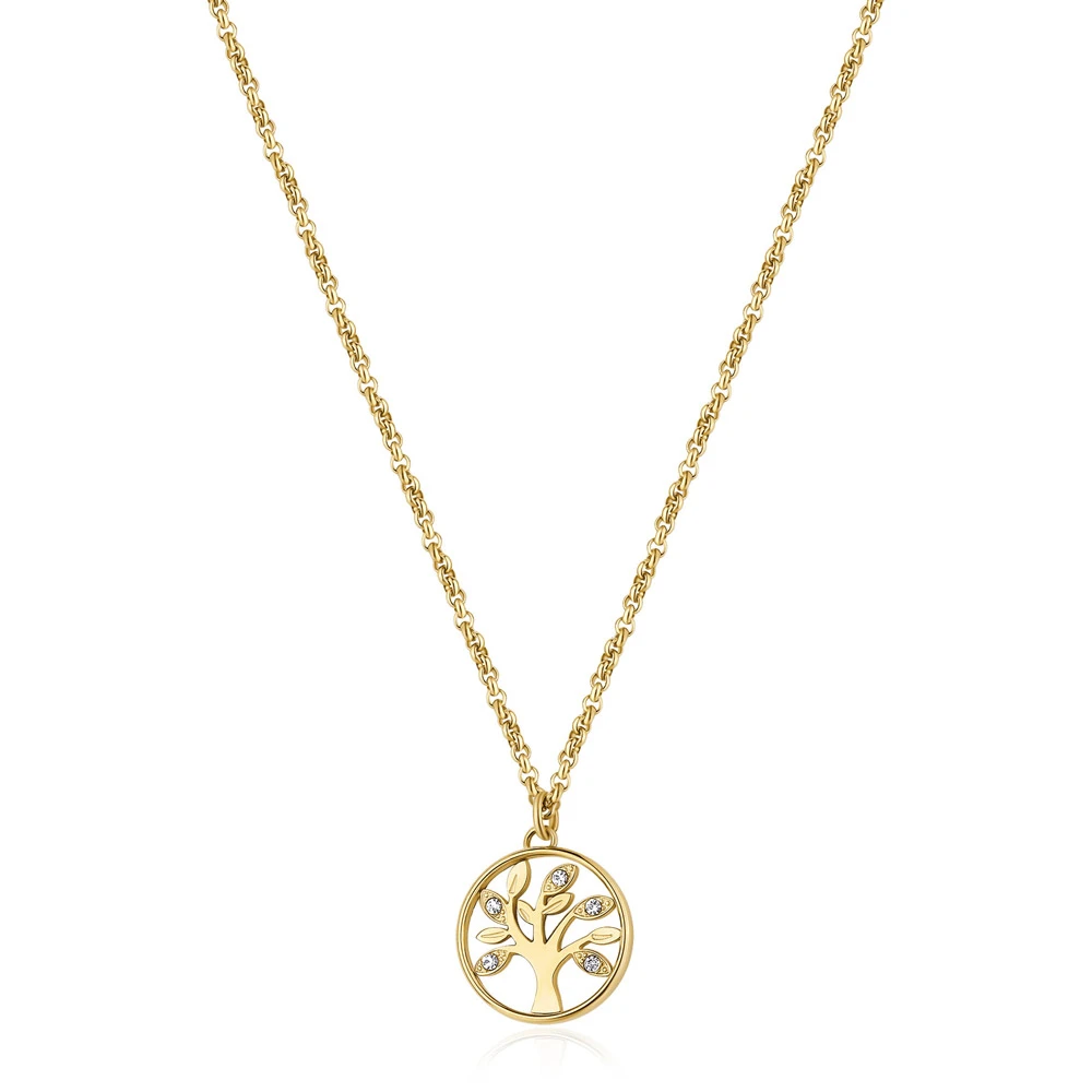 Dámský náhrdelník z chirurgické oceli 316L z kolekce Chakra se stromem života. Povrch náhrdelníku je pozlacený technologií PVD. Náhrdelník je zdobený bílými krystaly a modrým smaltováním. Délka náhrdelníku 48cm.