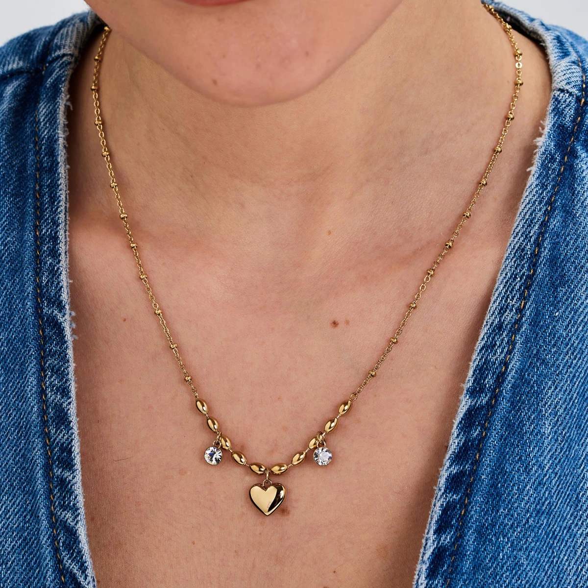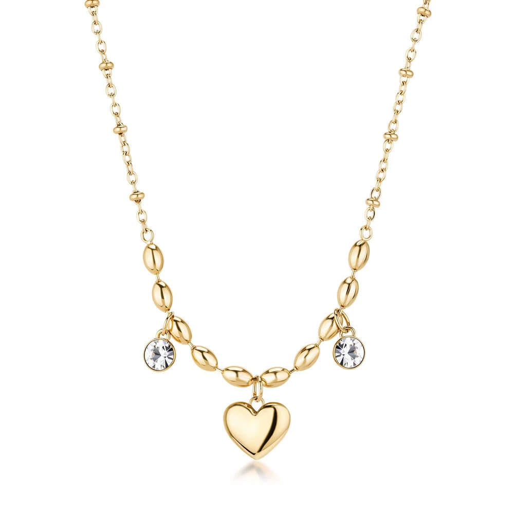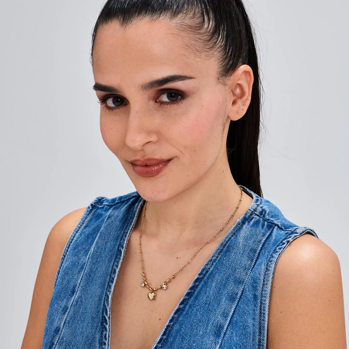 Dámský náhrdelník z chirurgické oceli z kolekce Chakra. Náhrdelník má svoji nositelku ochránit před nepřízní osudu a nevraživostí druhých lidí. Povrch náhrdelníku je pozlacený technologií PVD. Náhrdelník je zdobený bílými krystaly. Délka náhrdelníku 48cm.