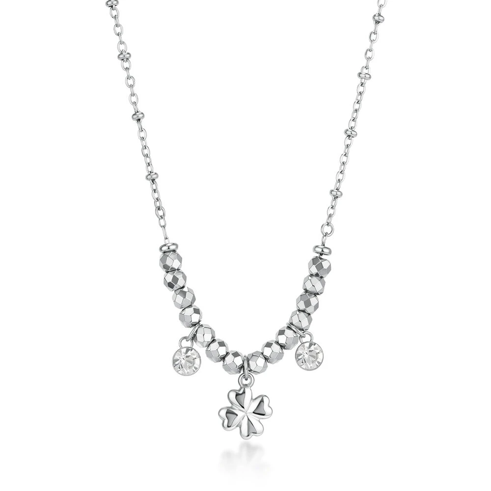 Dámský náhrdelník z chirurgické oceli z kolekce Chakra. Náhrdelník má svoji nositelku ochránit před nepřízní osudu a nevraživostí druhých lidí. Povrch náhrdelníku je leštěný. Náhrdelník je zdobený bílými krystaly. Délka náhrdelníku 48cm.