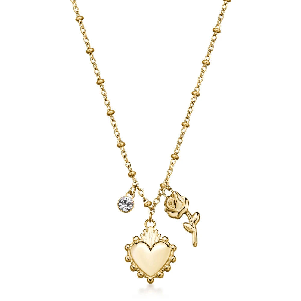 Dámský náhrdelník z chirurgické oceli z kolekce Chakra. Náhrdelník má svoji nositelku ochránit před nepřízní osudu a nevraživostí druhých lidí. Povrch náhrdelníku je pozlacený technologií PVD. Náhrdelník je zdobený srdíčkem, květinou a čirým krystalem. Délka náhrdelníku 54cm.