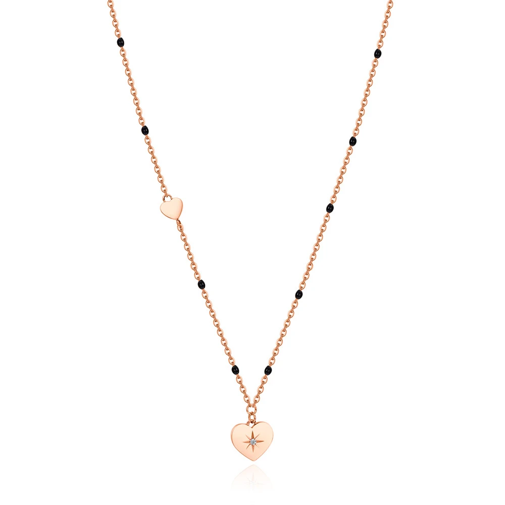 Dámský náhrdelník z chirurgické oceli 316L z Chant. Povrch náhrdelníku je pozlacený technologií PVD. Náhrdelník je zdobený bílým krystalem a černými smaltovanými korálky. Délka náhrdelníku 43cm.