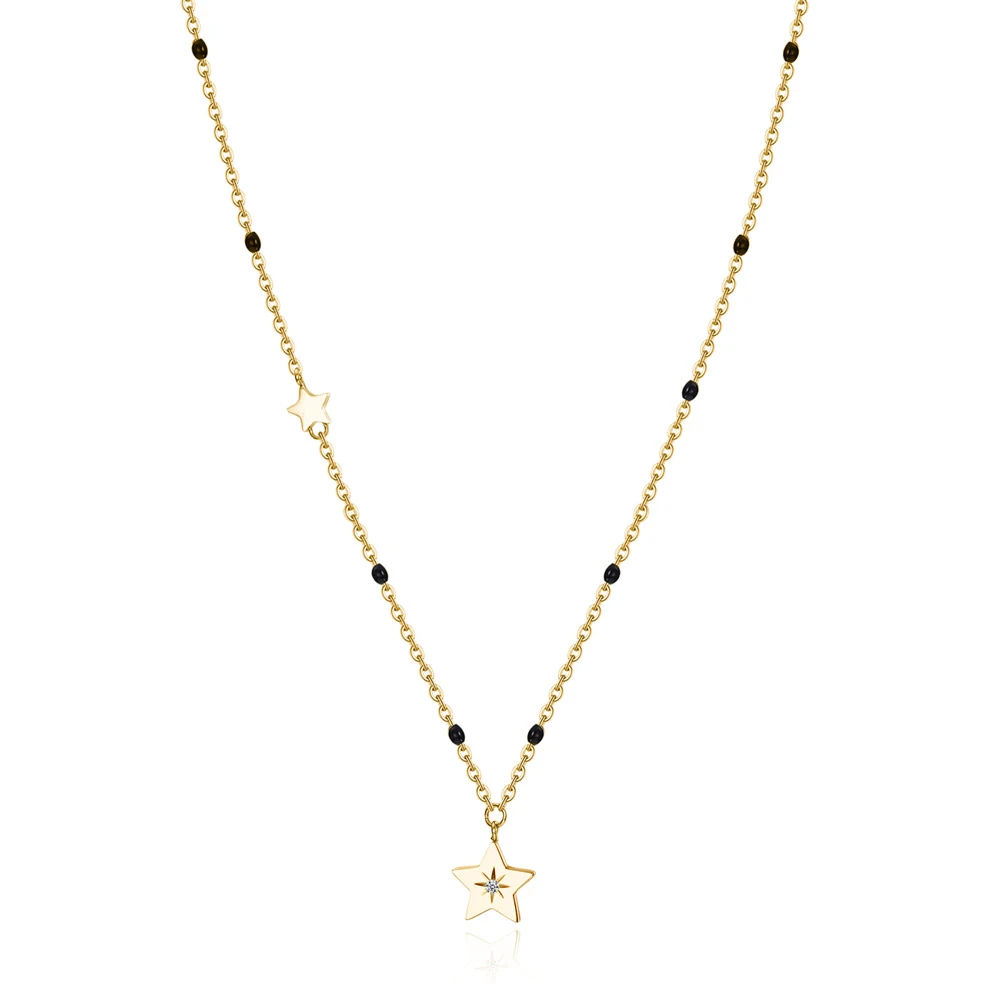 Dámský ocelový náhrdelník z kolekce Chant. Povrch náhrdelníku je leštěný pozlacený technologií PVD. Náhrdelník zdobí zářivý kamínek. Délka náhrdelníku 43cm.
