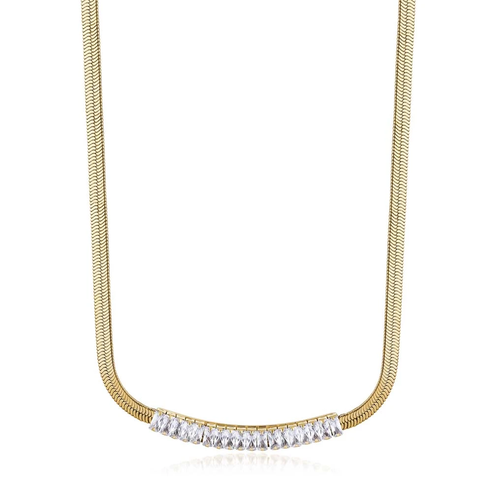 Dámský náhrdelník z chirurgické oceli s kamínky. Povrch náhrdelníku je pozlacený technologií PVD. Náhrdelník je osazený prvotřídními zirkony. Délka náhrdelníku 43cm.