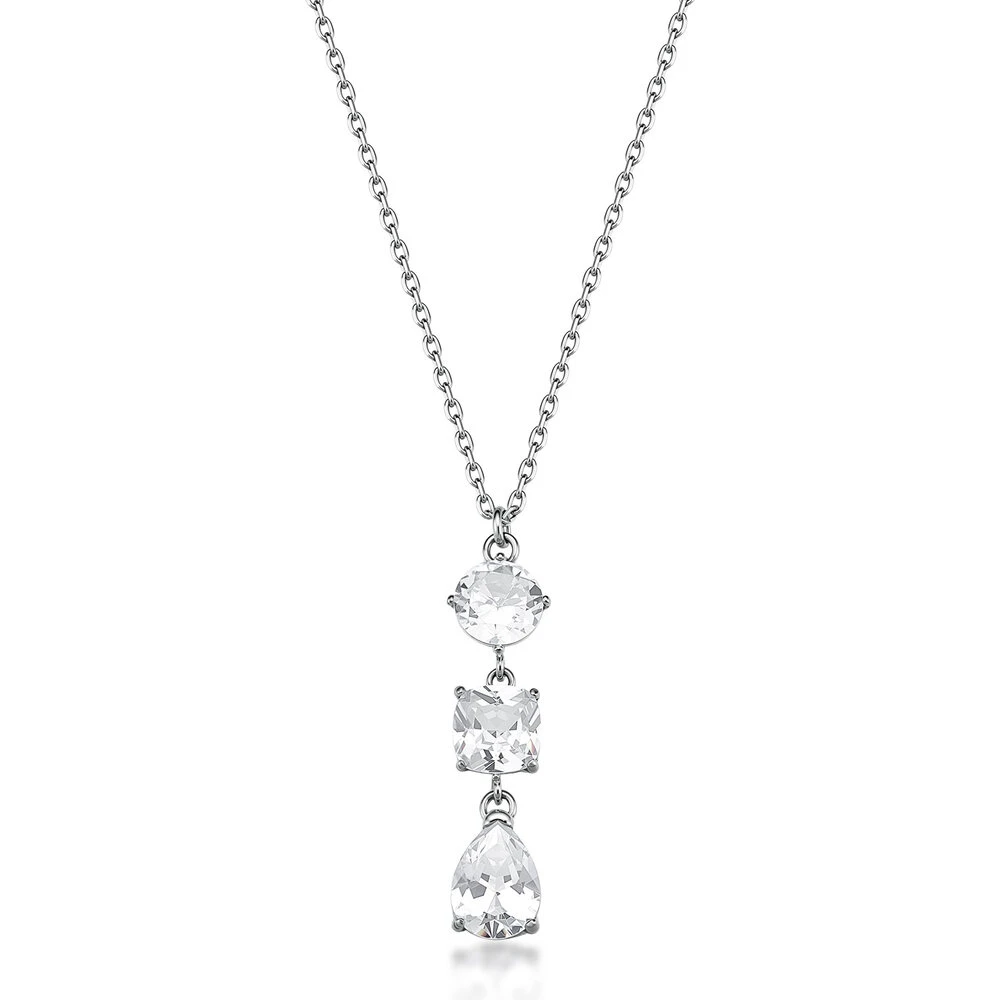 Dámský náhrdelník z chirurgické oceli. Povrch náhrdelníku je leštěný. Náhrdelník zdobí zářivé čiré zirkony. Zapínání náhrdelníku je karabinové. Náhrdelník je dlouhý 45 cm.