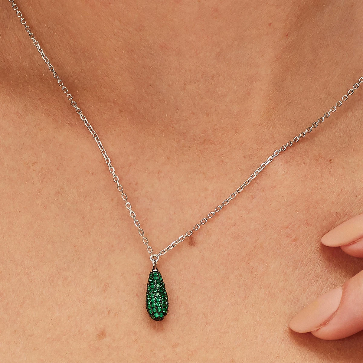 Stříbrný náhrdelník s kamínky. Náhrdelník je vyrobený ze stříbra 925/1000 a je osazený brilantními zirkony. Povrch náhrdelníku je navíc porhodiovaný což mu dodává zářivý luxusní vzhled, potlačuje přirozenou oxidaci stříbra, chrání povrch náhrdelníku před poškrábáním a udržuje jeho dlouhodobý bezvadný vzhled. Náhrdelník je dlouhý 44cm.