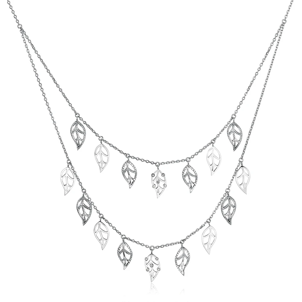 Dvouřadový náhrdelník Brosway z kolekce Leaves for Life s přívěsky ve tvaru lístků a krystaly je vyrobený z chirurgické oceli 316L. Šperky vyrobené z chirurgické oceli jsou odolné proti poškrábání, nemění barvu, neoxidují, nevyvolávají alergické reakce ani nereagují na pot a prach. Náhrdelník je dlouhý 43 cm.