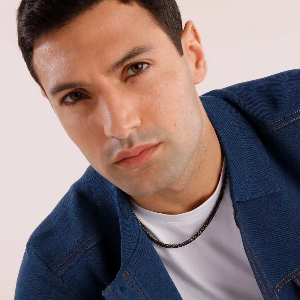 Pánský náhrdelník z chirurgické oceli 316L . Povrch náhrdelníku upraven technologií PVD na barvu pistolové šedi. Délka náhrdelníku 50cm.