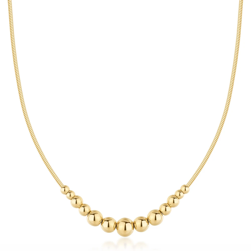 Dámský náhrdelník z chirurgické oceli s pozlaceným povrchem, Náhrdelník je dlouhý 46 cm. Zapínání náhrdelníku je karabinové.