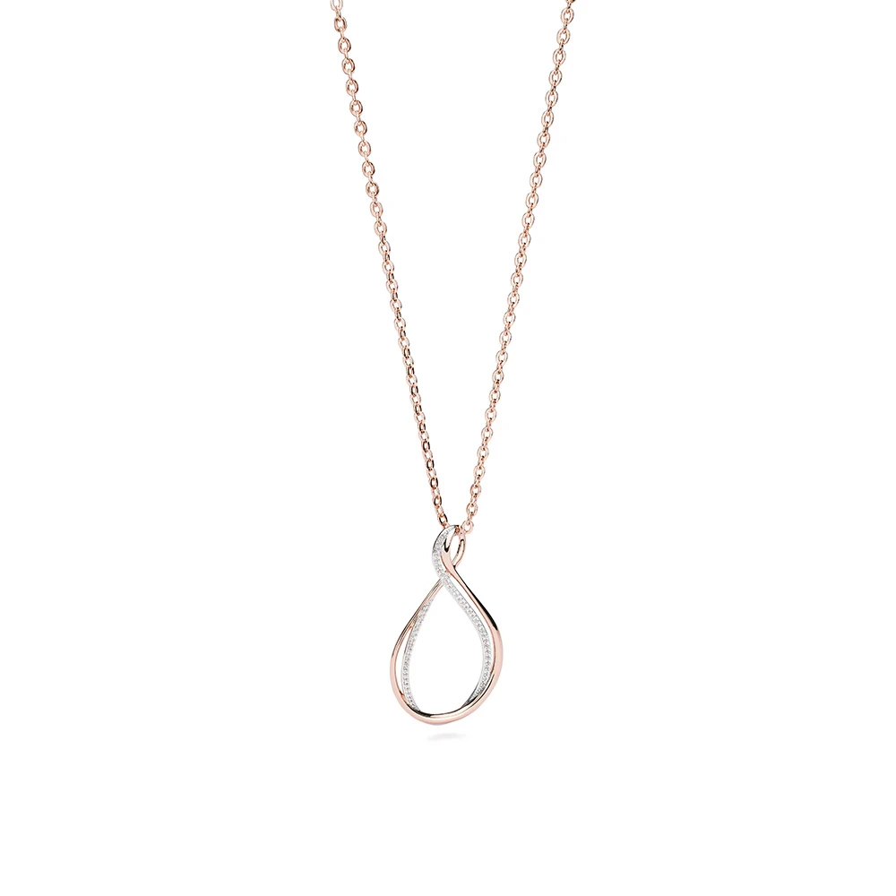 Elegantní náhrdelník Brosway z kolekce Ribbon s přívěskem s krystaly je vyrobený z bronzu a je růžově pozlacený technologií PVD. Náhrdelník je dlouhý 51 cm.