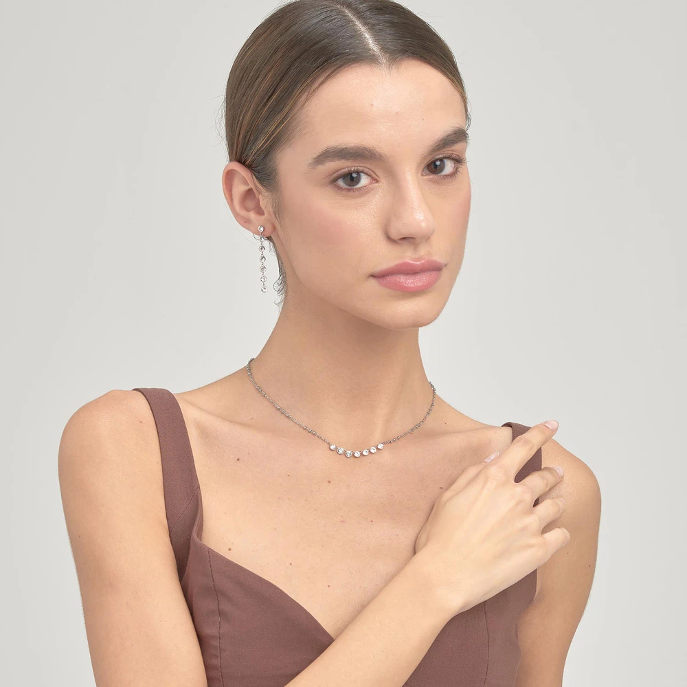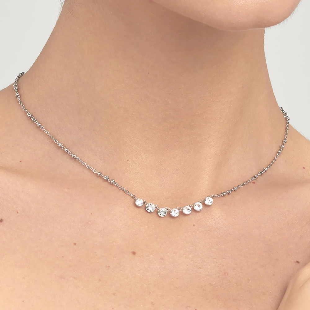 Náhrdelník pro ženy z chirurgické oceli 316L z kolekce Symphonia. Povrch náhrdelníku je leštěný. Náhrdelník je zdobený bílými krystaly. Délka náhrdelníku 45cm.
