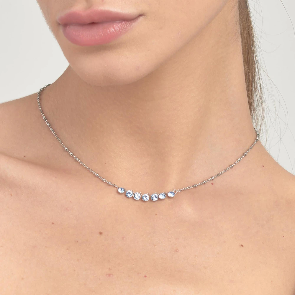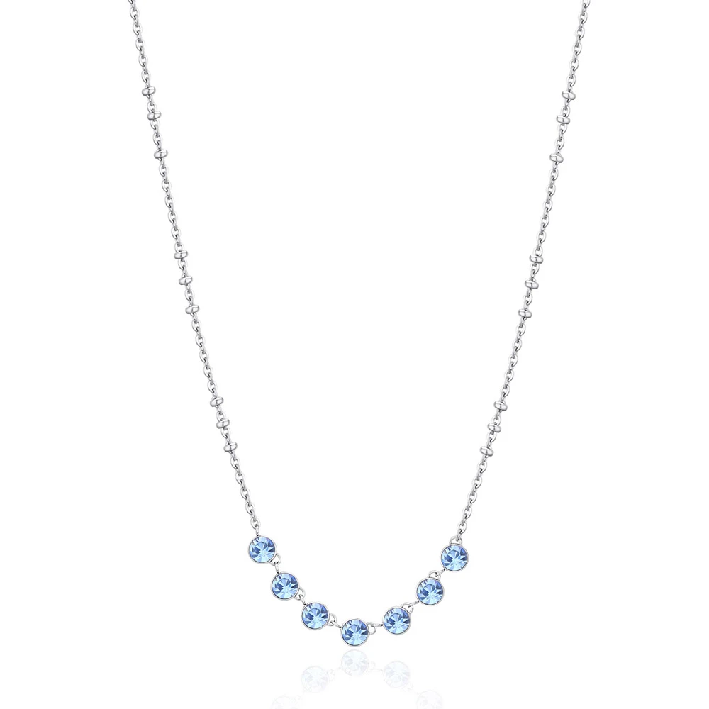 Dámský náhrdelník z chirurgické oceli 316L z kolekce Symphonia. Povrch náhrdelníku je leštěný. Náhrdelník je zdobený modrými krystaly. Délka náhrdelníku 45cm.