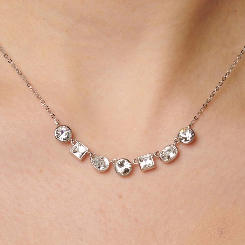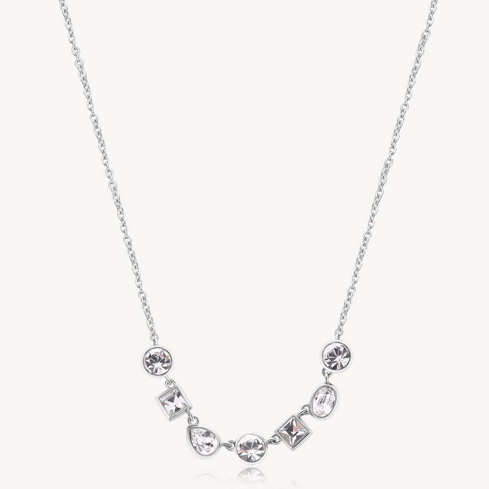 Náhrdelník z chirurgické oceli s kamínky. Povrch náhrdelníku je leštěný Náhrdelník je osazený zářivými krystaly. Délka náhrdelníku 43cm.