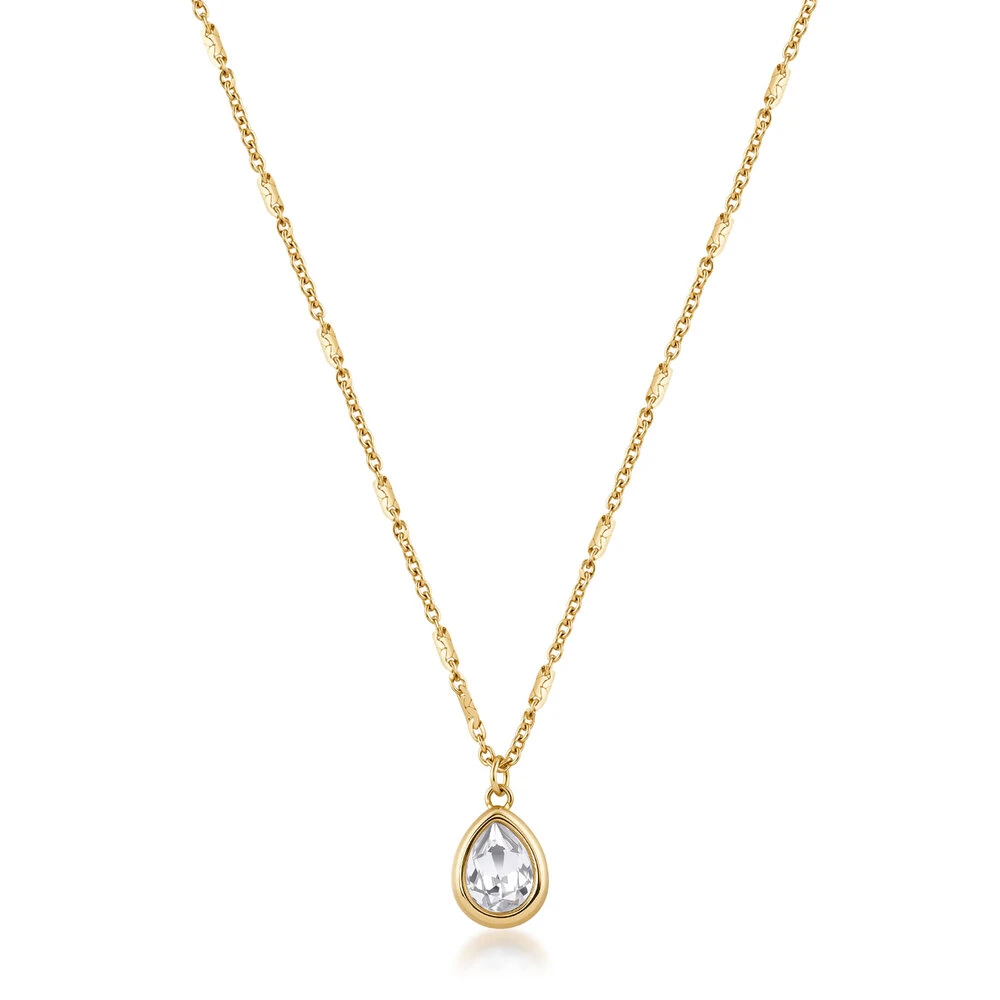 Dámský náhrdelník z chirurgické oceli. Povrch náhrdelníku je leštěný pozlacený technologií PVD. Náhrdelník zdobí zářivý kamínek. Zapínání náramku je karabinové. Délka náhrdelníku 56 cm.