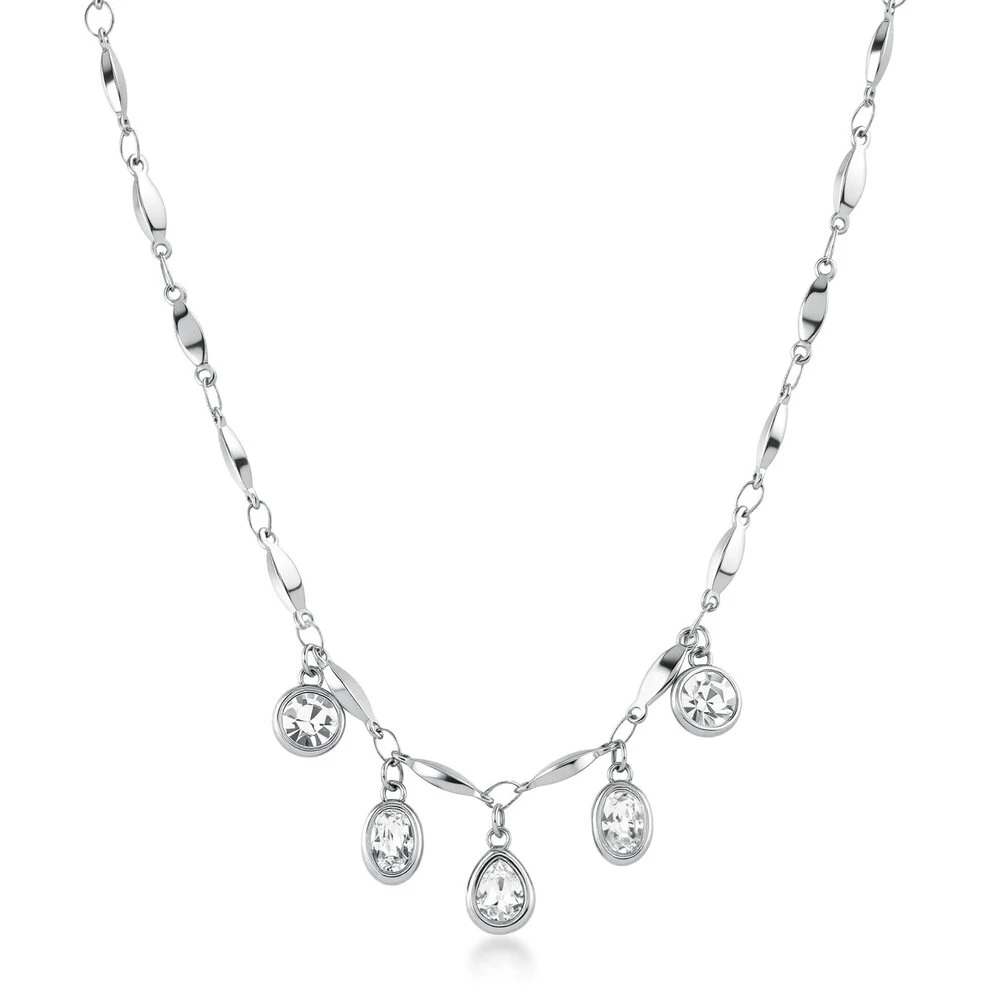 Dámský náhrdelník z chirurgické oceli. Povrch náhrdelníku je leštěný. Náhrdelník zdobí zářivé kamínky. Zapínání náramku je karabinové Délka náhrdelníku 56 cm.