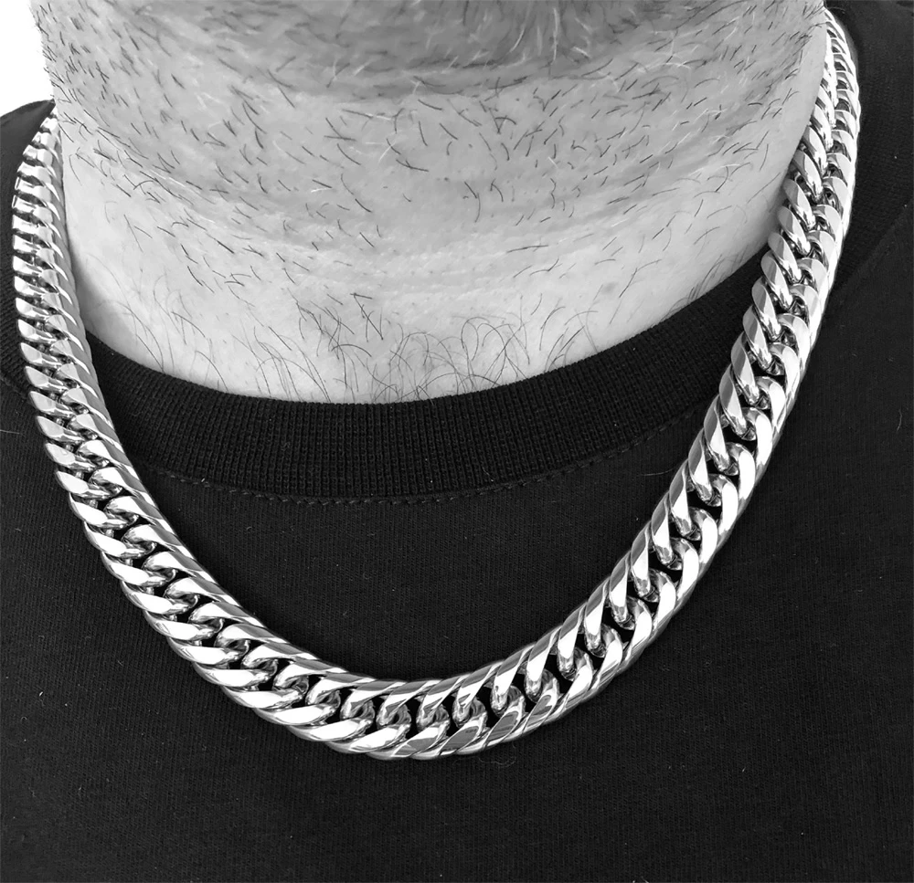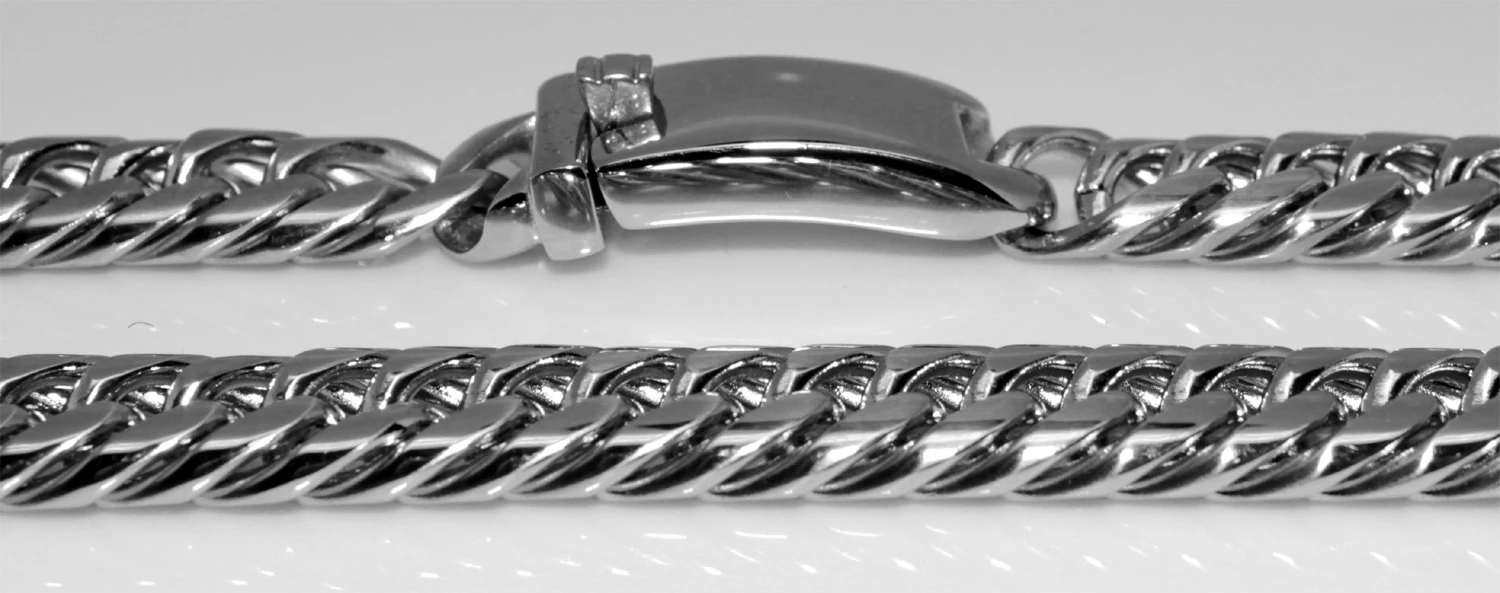 Masivní náhrdelník z chirurgické oceli. Povrch náhrdelníku je leštěný. Náhrdelník se zapíná pomocí masivního klipu. šířka náhrdelníku 12mm. Hmotnost náhrdelníku v délce 55cm 128g.