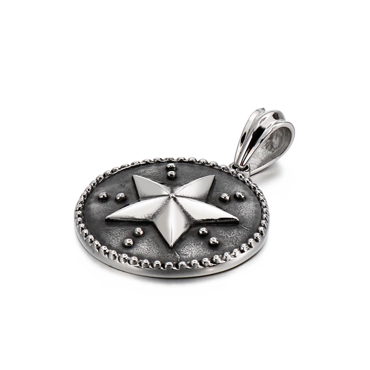 Náhrdelník s přívěskem pentagramu (pěticípé hvězdy). Pentagram představuje velmi silný symbol, který používali a používají čarodějové, gnostici, svobodní zednáři, satanisté, mágové a další po celém světě. Vždy záleží za jakým účelem sílu pentagramu užíváme, zda pro dobro, nebo zlo. Záleží na tom co člověk nosí v srdci. Zlý člověk použije symbol pentagramu pro zlé věci, dobrý člověk naopak využije sílu pentagramu pro dobré věci. Náhrdelník je zhotovený z chirurgické oceli.