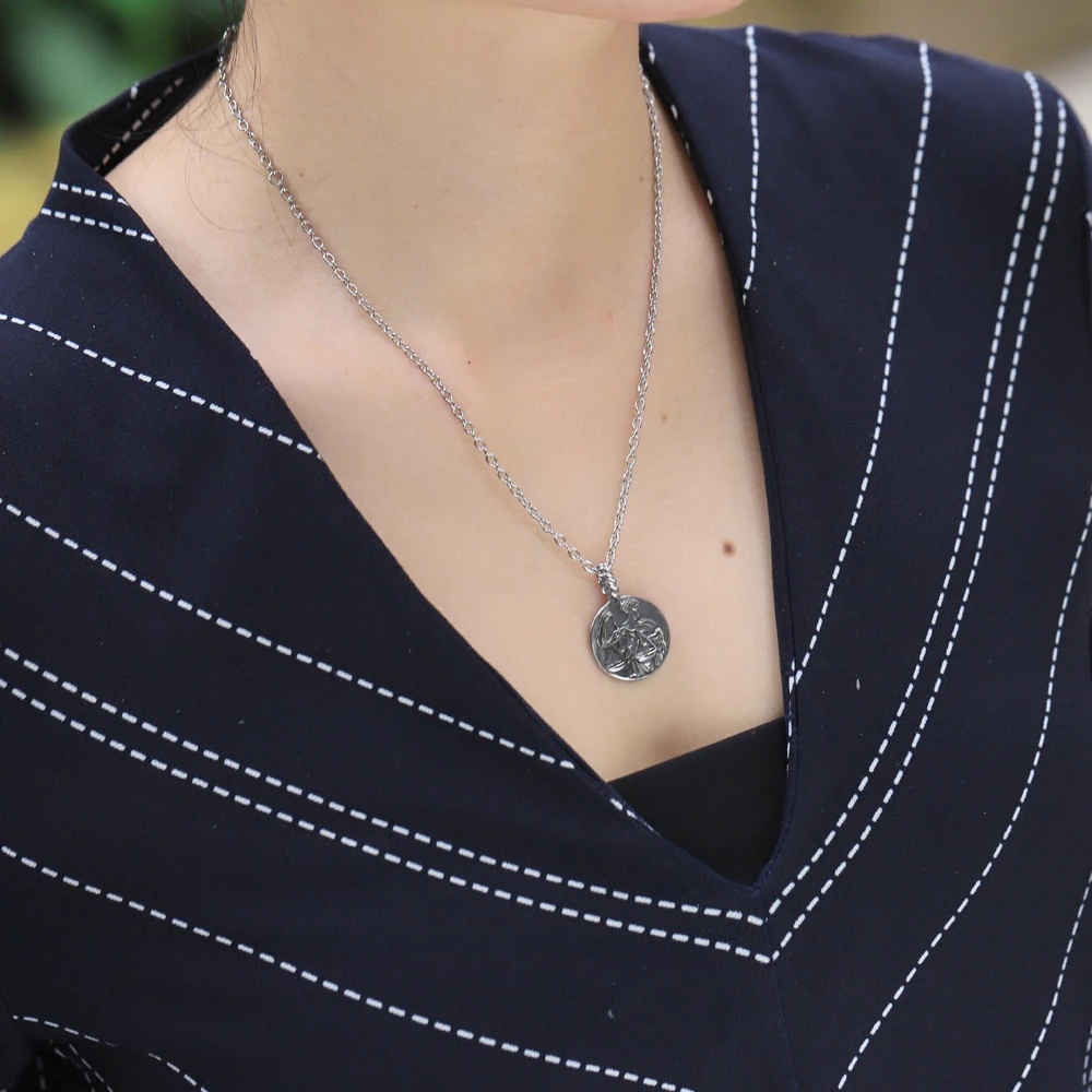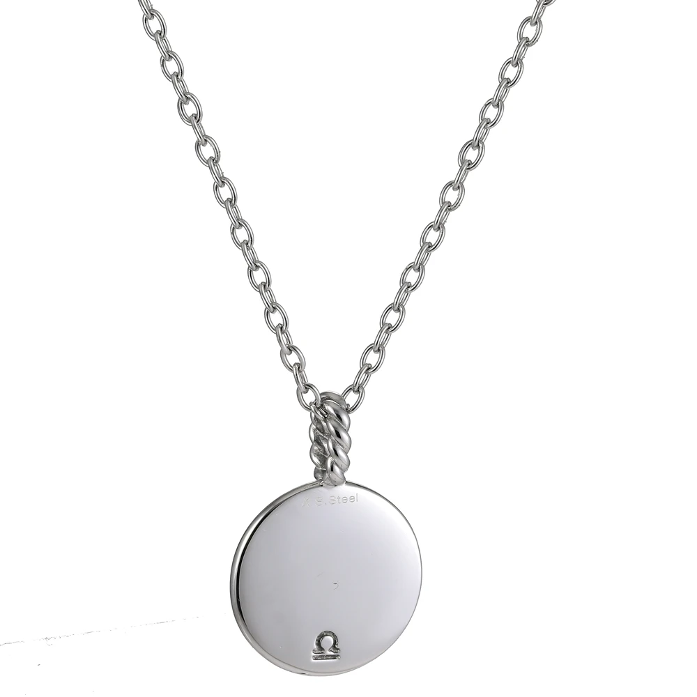 Náhrdelník z chirurgické oceli se znamením Váhy (23.9 - 23.10). Náhrdelník tvoří kulatý přívěsek s plastickým znamením Váhy a řetízek vzor ankr. Přívěsek má průměr 20mm, řetízek je široký 2,2mm, dlouhý 50cm.