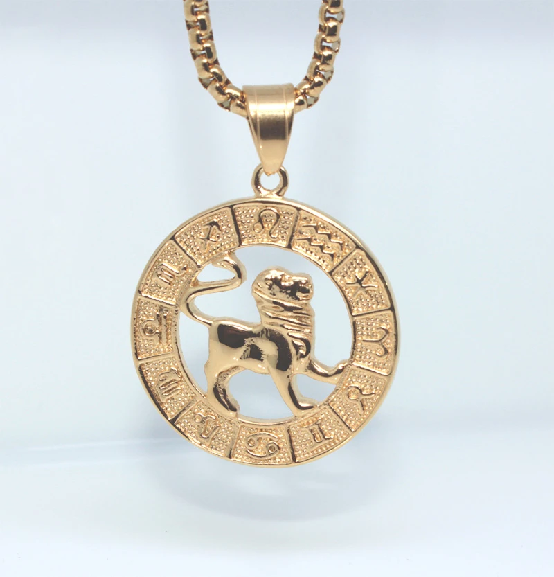 Náhrdelník z chirurgické oceli se znamením lva. Povrch náhrdelník u je pozlacený technologií PVD. Jako všechny ocelové šperky má také tento náhrdelník všechny vlastnosti, pro které jsou šperky z chirurgické oceli stále oblíbené. K těmto vlastnostem patří především odolnost, nevyvolávání alergických reakcí, barevná stálost a příznivá cena při srovnání se šperky z drahých kovů.