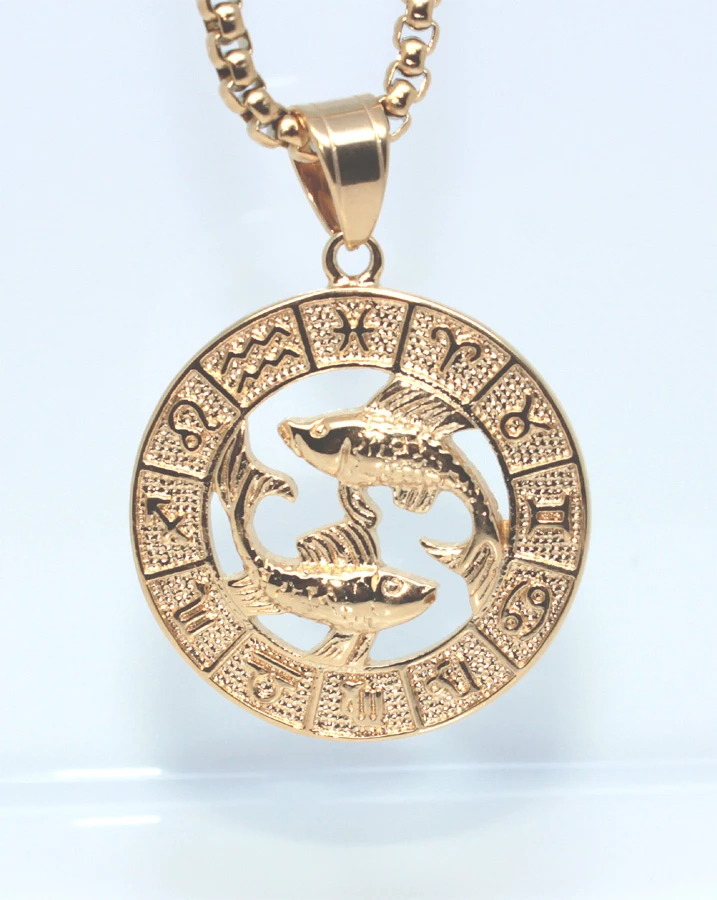 Náhrdelník z chirurgické oceli se znamením ryb. Povrch náhrdelník u je pozlacený technologií PVD. Jako všechny ocelové šperky má také tento náhrdelník všechny vlastnosti, pro které jsou šperky z chirurgické oceli stále oblíbené. K těmto vlastnostem patří především odolnost, nevyvolávání alergických reakcí, barevná stálost a příznivá cena při srovnání se šperky z drahých kovů.