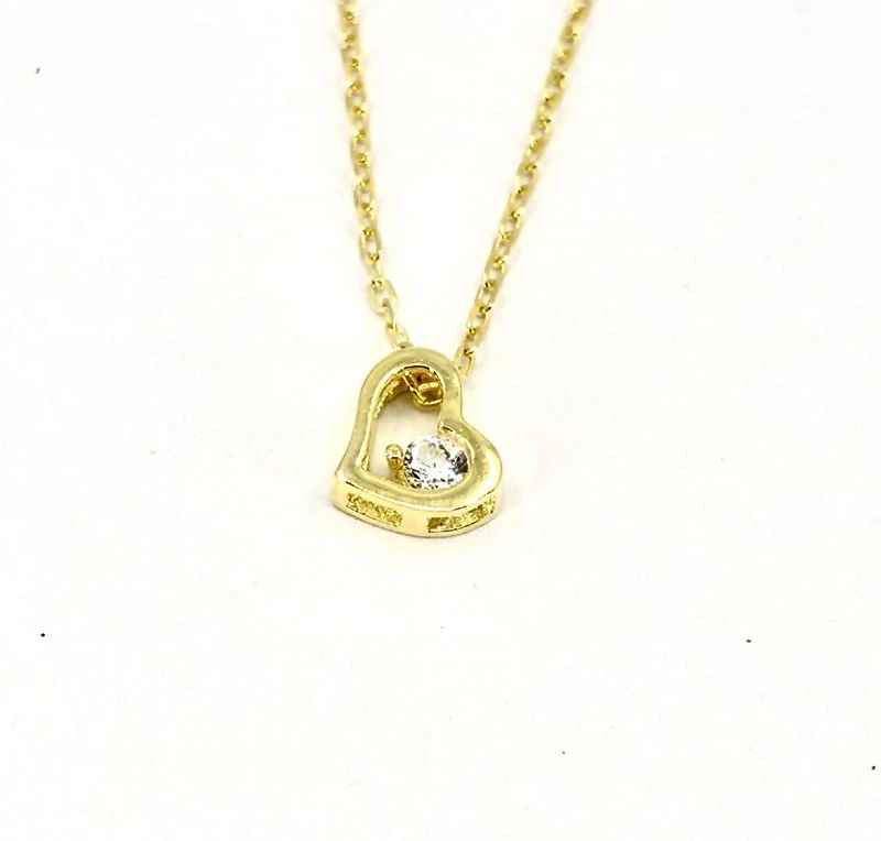 Náhrdelník z pozlaceného stříbra ryzosti 925/1000. Pozlacení je provedeno žlutým 14k zlatem. Srdíčko ozdobené zářivým zirkonem má rozměr 6x7mm. Řetízek vzoru anker je široký 1,0mm. Délku náhrdelníku lze nastavit v rozmezí 40-45cm.