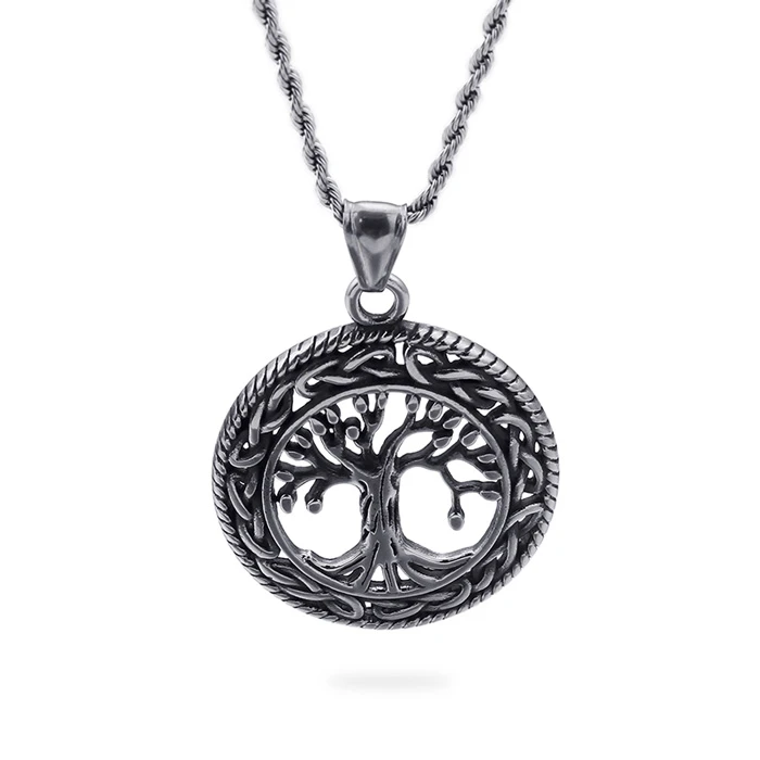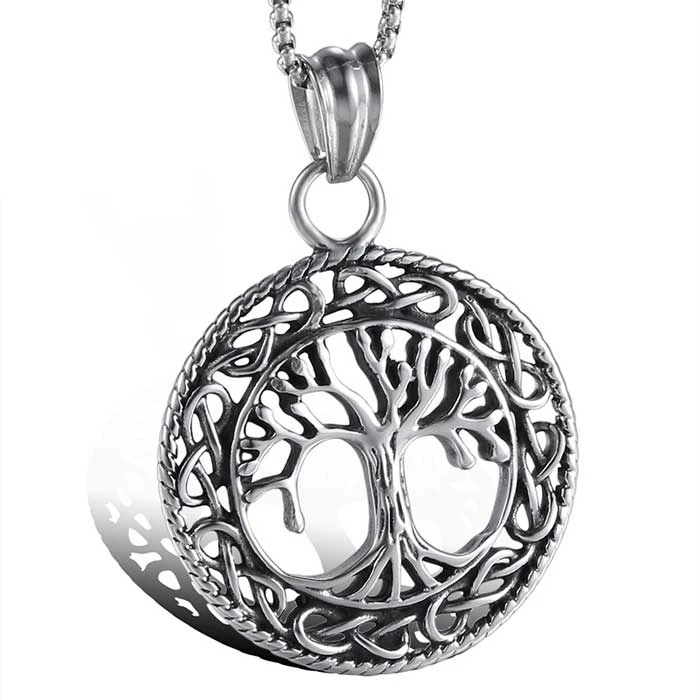 Náhrdelník se symbolem stromu života. Symbol stromu života v sobě spojuje síly Nebes a Země, proto představuje symbol síly, stability, tvořivosti a plodnosti. Spojení sil Nebes a Země umožnuje tvořit a plodit pro potěšení nás všech. Kořenový systém stromu prostupuje hluboko do země, kde získává potřebné živiny a vláhu, jeho kmen stojí ve volném prostoru, široká koruna stromu se rozrůstá do stran a její vrcholek dosahuje k nebi. Strom poskytuje životní prostor celé řadě živočichů od hmyzu, ptactva, obratlovců až po lidi, kteří v horkých dnech rádi spočinou ve stínu koruny stromu. Současně spojením sil Země a Nebes, plodí stromy plody tolik potřebné pro přežití celé řady zvířat, nebo dokonce lidí. Symbol stromu života má hluboký význam, a stejně tak jako stromy stojíme i my nohami na zemi a hlavou se dotýkáme nebes. Dokážeme tedy propojovat jak duchovní s hmotným, což nám umožňuje pracovat a tvořit pro dobro náš všech.