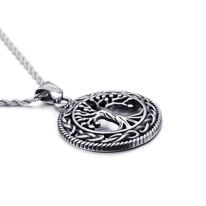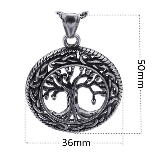Náhrdelník z chirurgické oceli strom života. Přívěsek se stromem života má průměr 36mm. Ocelový kuličkový řetízek je dlouhý 60cm, průměr řetízku 3,0mm.