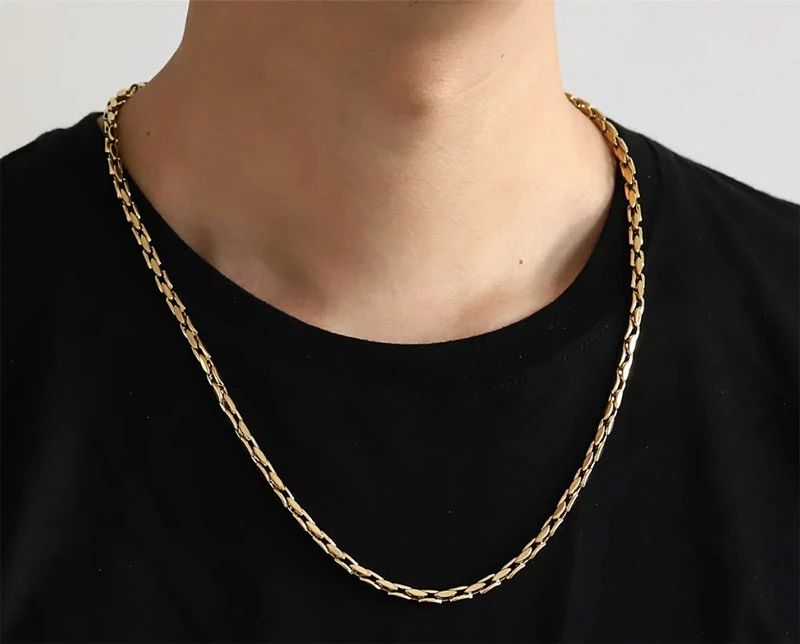 Stylový náhrdelník z chirurgické oceli. Povrch náhrdelníku je leštěný. Náhrdelník je široký 4mm, délka 60cm. Zapínání náhrdelníku je karabinové. Délku náhrdelníku lze na přání zdarma zkrátit.