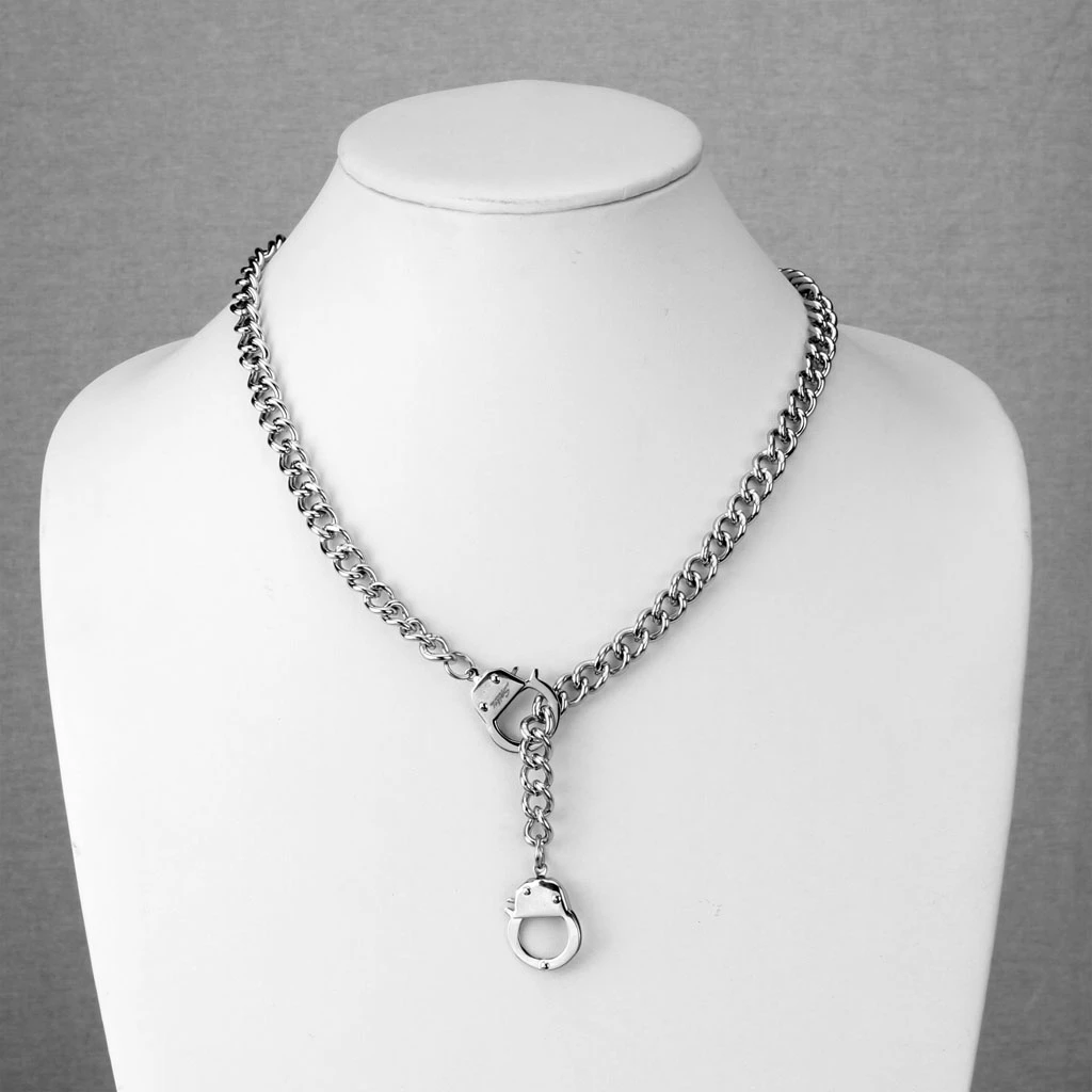 Náhrdelník pouta vyrobený z chirurgické oceli. Povrch náhrdelníku je leštěný, obě pouta mají funkční závěry a je možné zapnout jedno pouto do druhého, nebo řetízek poutem pouze provléct. Řetízková část náhrdelníku je široká 8 mm, délka náhrdelníku 55 cm. Délku náhrdelníku lze na přání zdarma zkrátit.