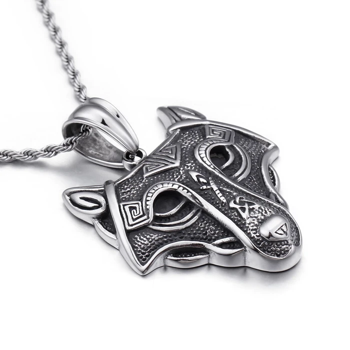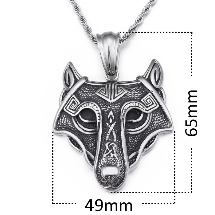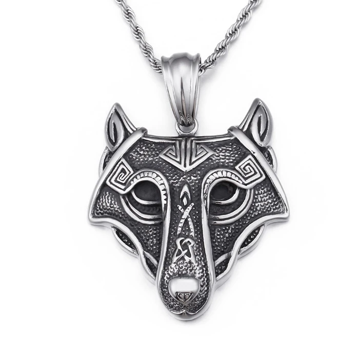 Ocelový náhrdelník s vlčí hlavou. Vlčí hlava představuje symbol síly a mužnosti. V severské mytologii doprovázeli boha Ódina vždy dva vlci. Jako všechny ocelové šperky je také tento náhrdelník z chirurgické oceli odolný proti poškození, neoxiduje, nemění barvu a nevyvolává alergické reakce.