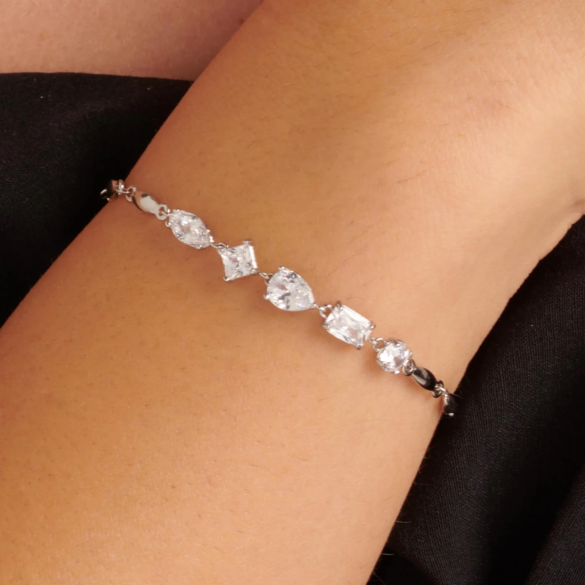 Dámský náramek z chirurgické oceli s kamínky. Povrch náramku je leštěný. Náramek je osazený prvotřídními zirkony. Délka náramku 18cm.