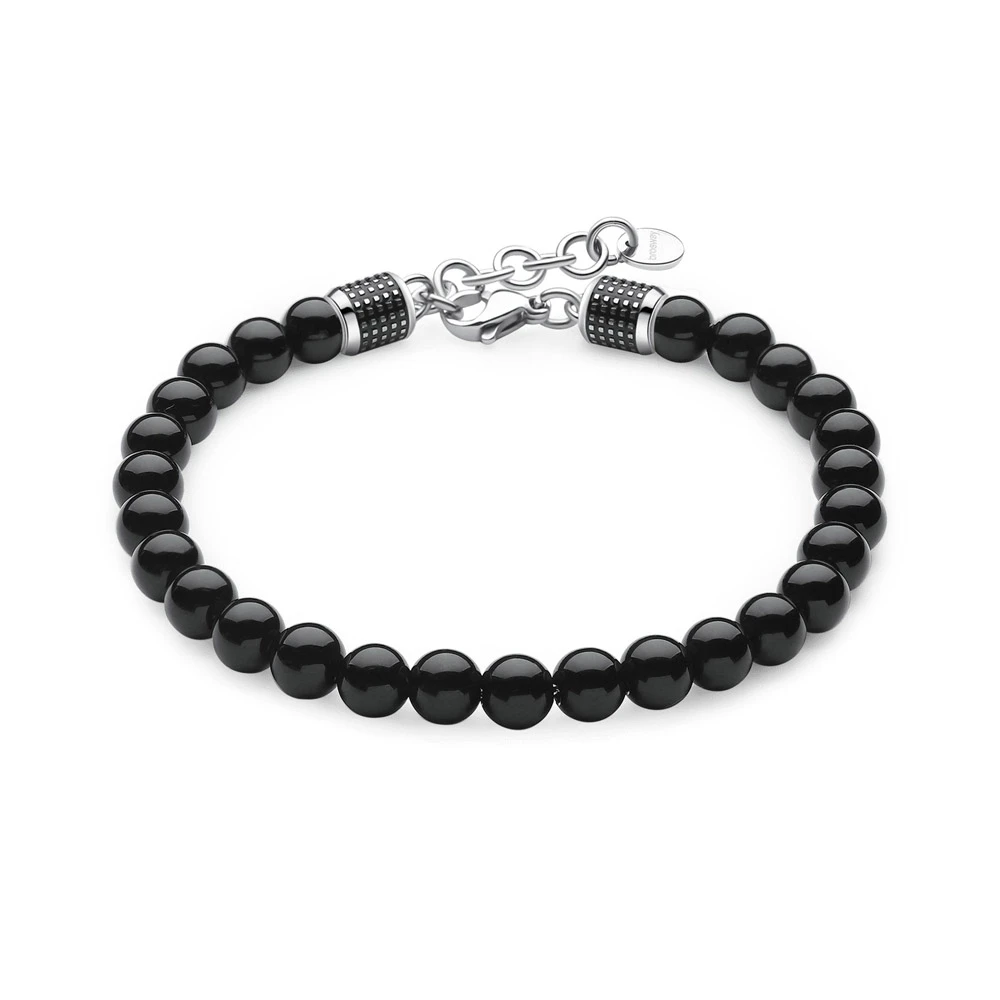 Elegantní náramek na ruku pro muže s onyxovými korálky. Zapínání náramku je karabinové. Délka náramku 21cm.