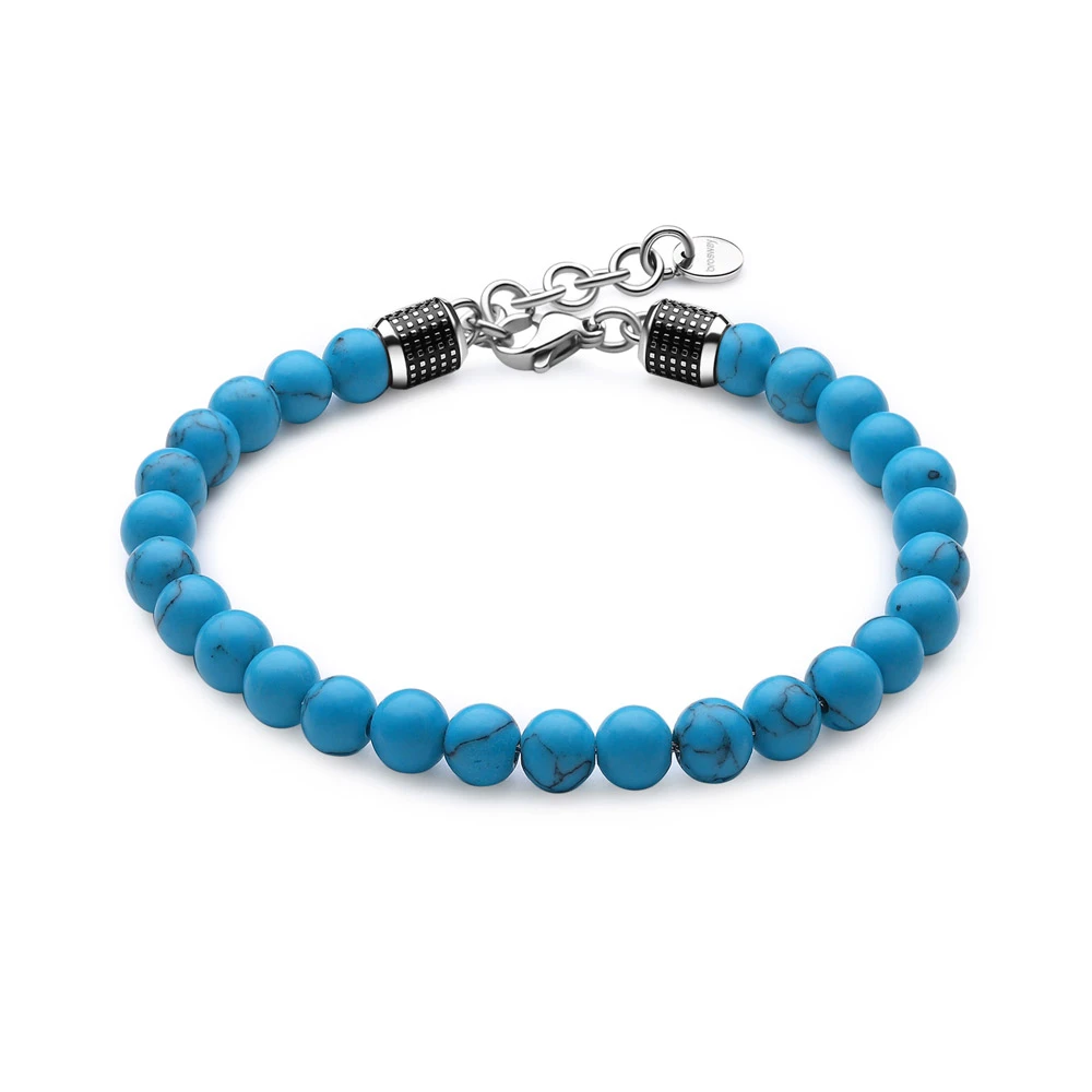 Pánský náramek Brosway z chirurgické oceli 316l a broušených tyrkysových korálků. Délka náramku 21 cm.