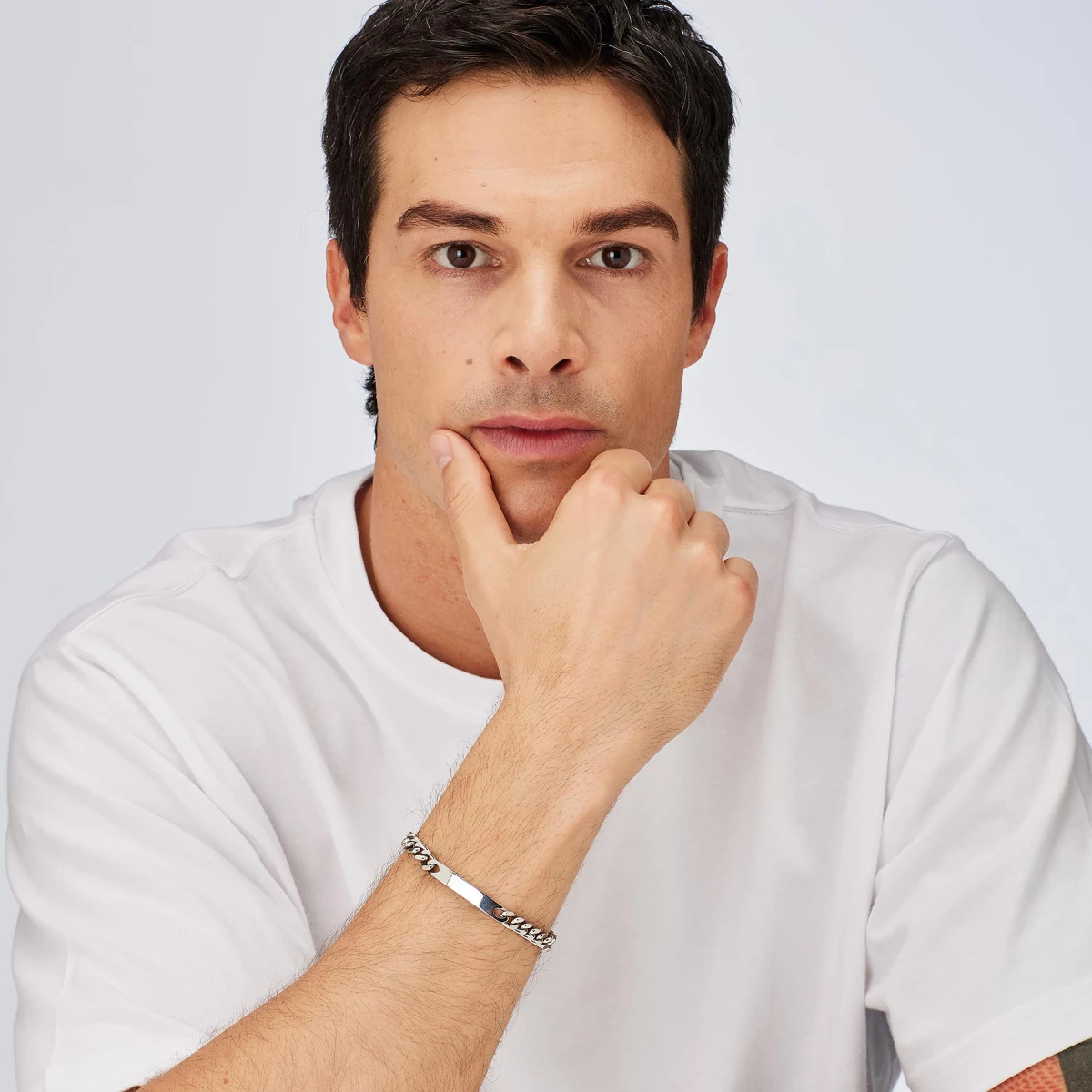 Pánský náramek na ruku z chirurgické oceli s destičkou. Náramek představuje spojení klasického designu s trvanlivou a odolnou chirurgickou ocelí. Tento stylový náramek je ideálním doplňkem pro každého, kdo hledá kvalitu a elegantní vzhled v jednom. Díky kvalitní chirurgické oceli mohou náramek nosit bez obav i osoby s citlivou pokožkou, chirurgická ocel je hypoalergenní a nehrozí tak vyvolání alergických reakcí. Tento náramek se hodí pro každou příležitost ať už ho nosíte do práce, na víkendové výlety, nebo na speciální akce. Náramek z chirurgické oceli je také skvělým dárkem pro vaše blízké. Věnujte jim šperk, který spojuje eleganci a praktičnost, a potěšte je kouskem, který budou nosit s radostí.
