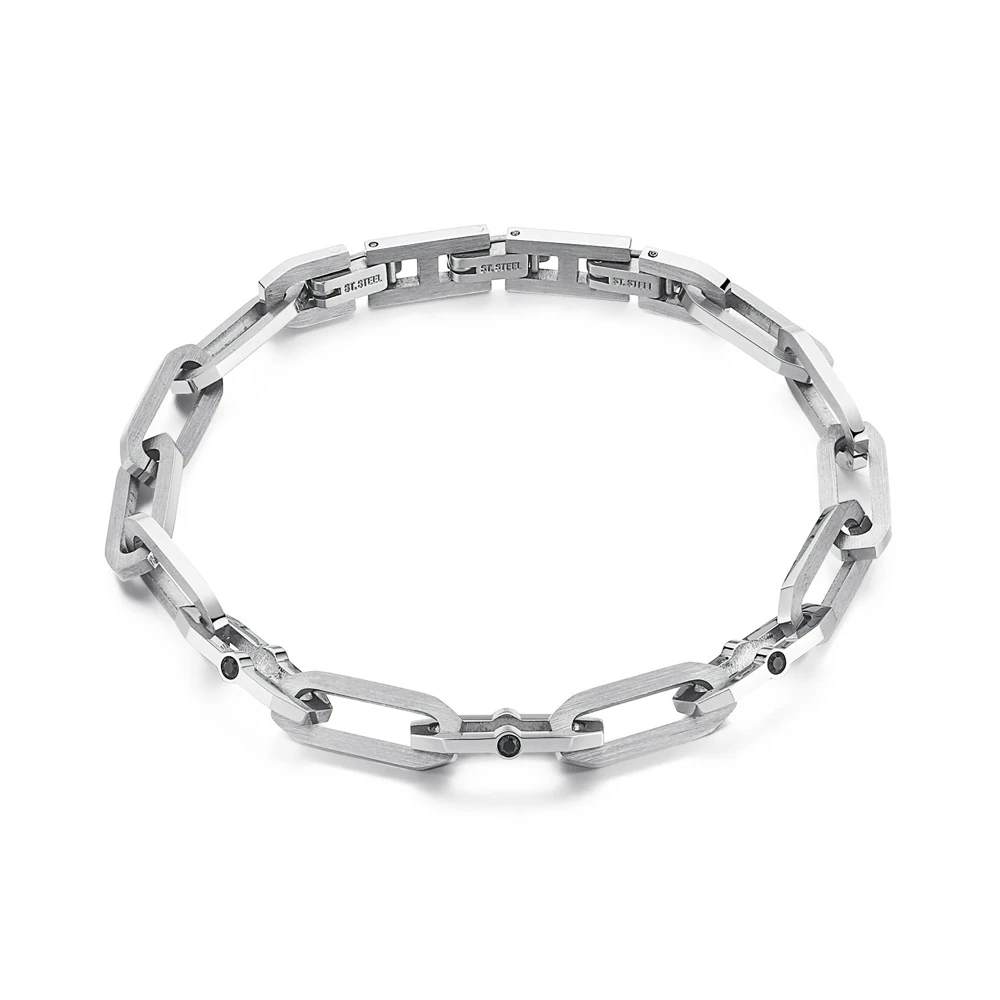 Pánský náramek Brosway. Povrch náramku je kombinace mat/lesk. Náramek je ozdobený černými krystalky. Dálka náramku 22cm.