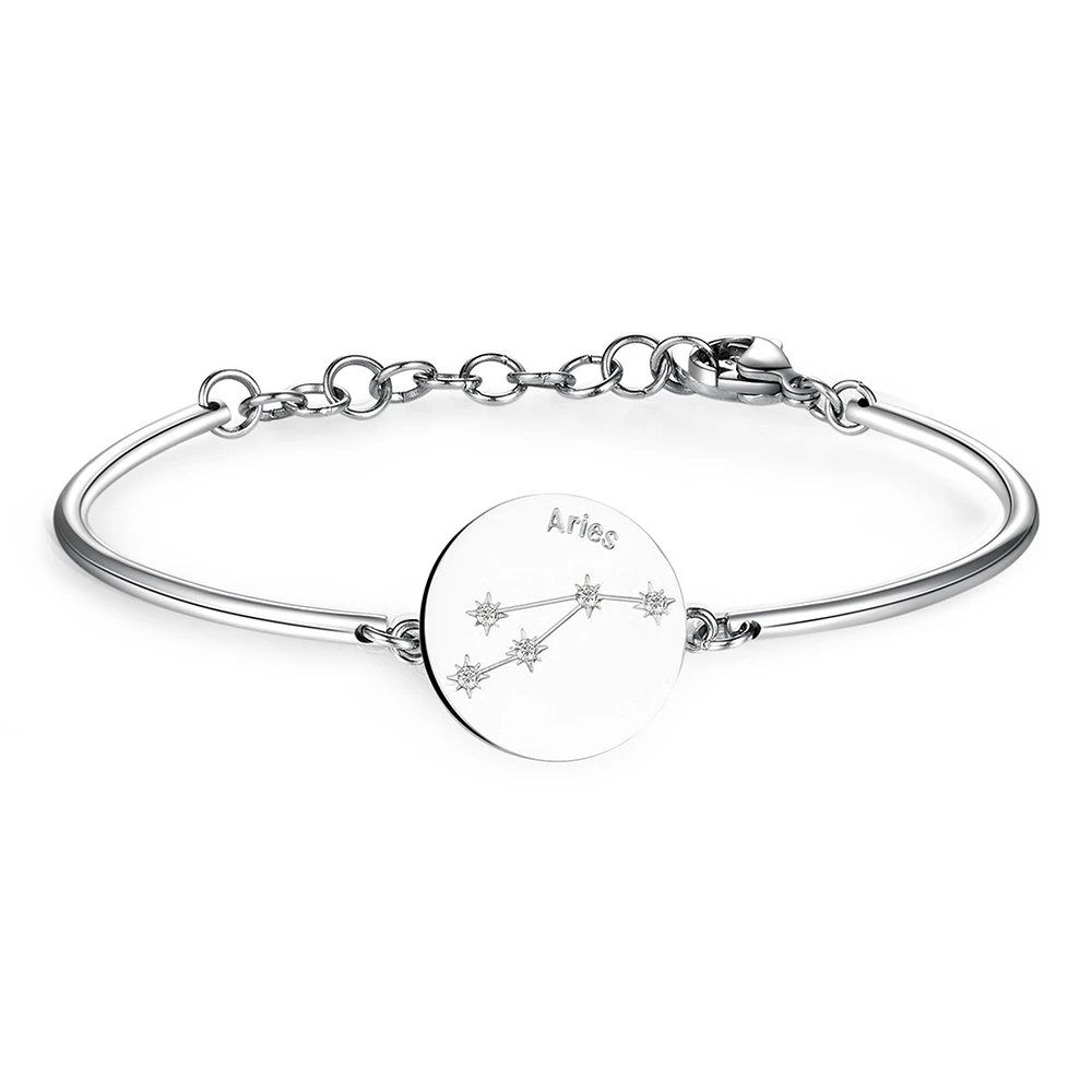 Náramek z chirurgické oceli Brosway se znamením berana (20.3-21.4). Povrch náramku je leštěný. Hvězdy ze souhvězdí jsou zastoupeny zářivými krystaly Swarovski. Ozdoba náramku se znamením má průměr 17 mm. Náramek má karabinové zapínání. Délku náramku lze plynule nastavit v rozmezí 15-18 cm.