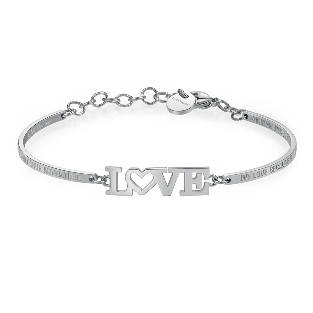 Dámský náramek z chirurgické oceli s nápisem LOVE. Zapínání náramku je karabinové, vnitřní průměr náramku 65mm.
