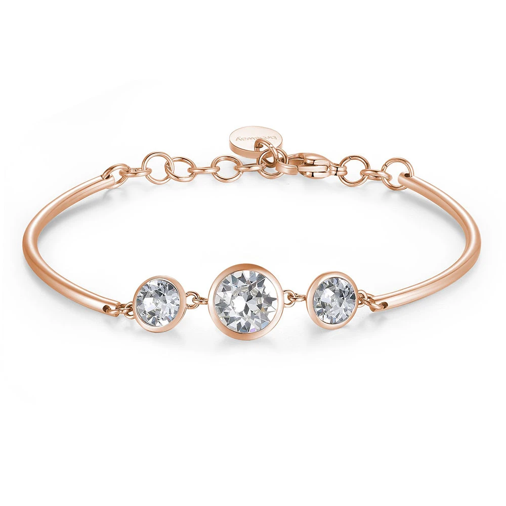 Dámský náramek z chirurgické oceli 316L. Krásný náramek zdobený třemi zářivými krystaly z kolekce Chakra. Leštěný povrch náramku je pozlacený technologií PVD. Vnitřní průměr náramku 65mm.