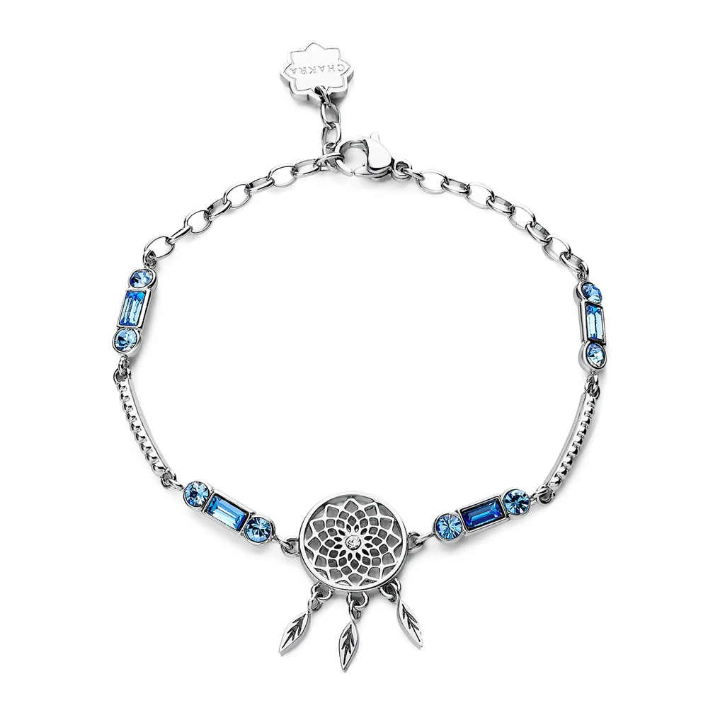 Náramek na ruku z kolekce Brosway Chakra je zdobený přívěškem a kamínky v modré barvě. Krásný dámský náramek je vyrobený z chirurgické oceli 316L. Zapínání je na karabinu a délka náramku je 17,5 cm.