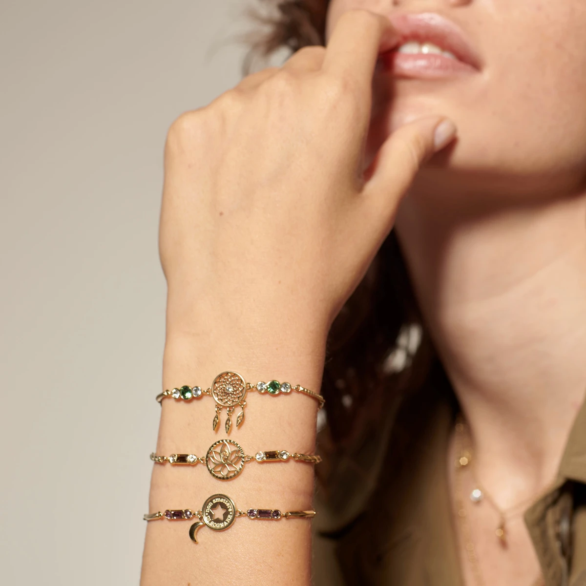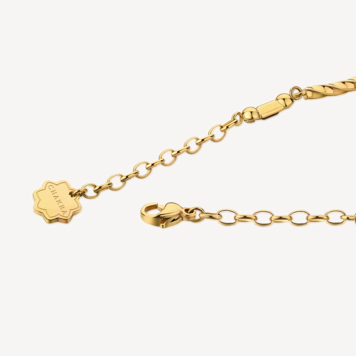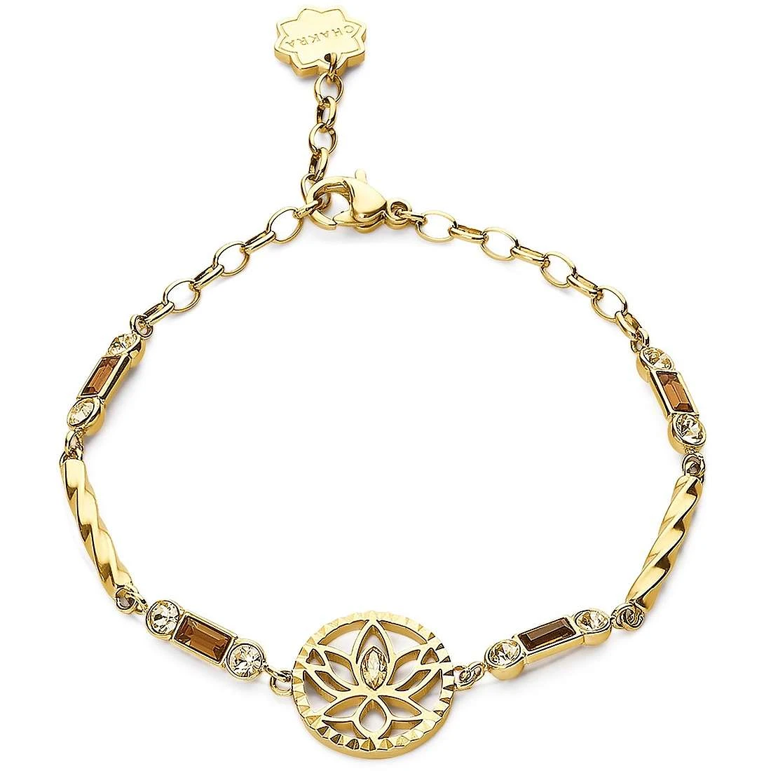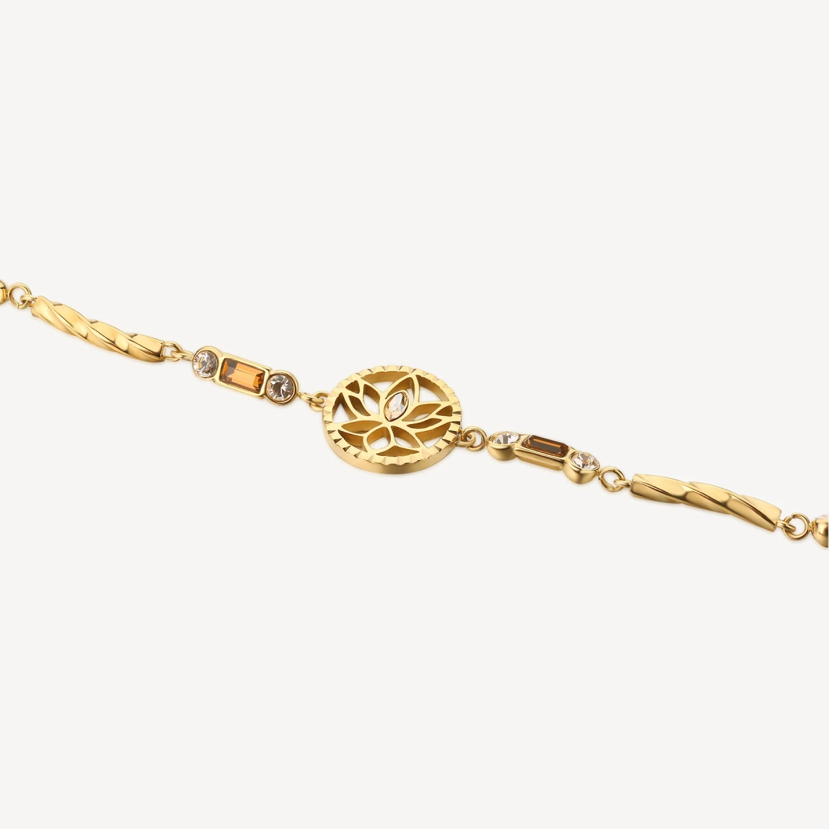 Dámský náramek z chirurgické oceli 316L s ozdobou lotosového květu. Povrch náramku je pozlacený technologií PVD. Délka náramku 17,5cm.