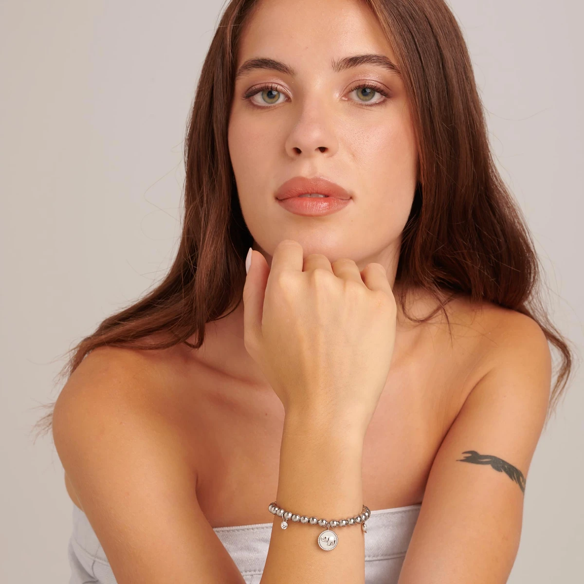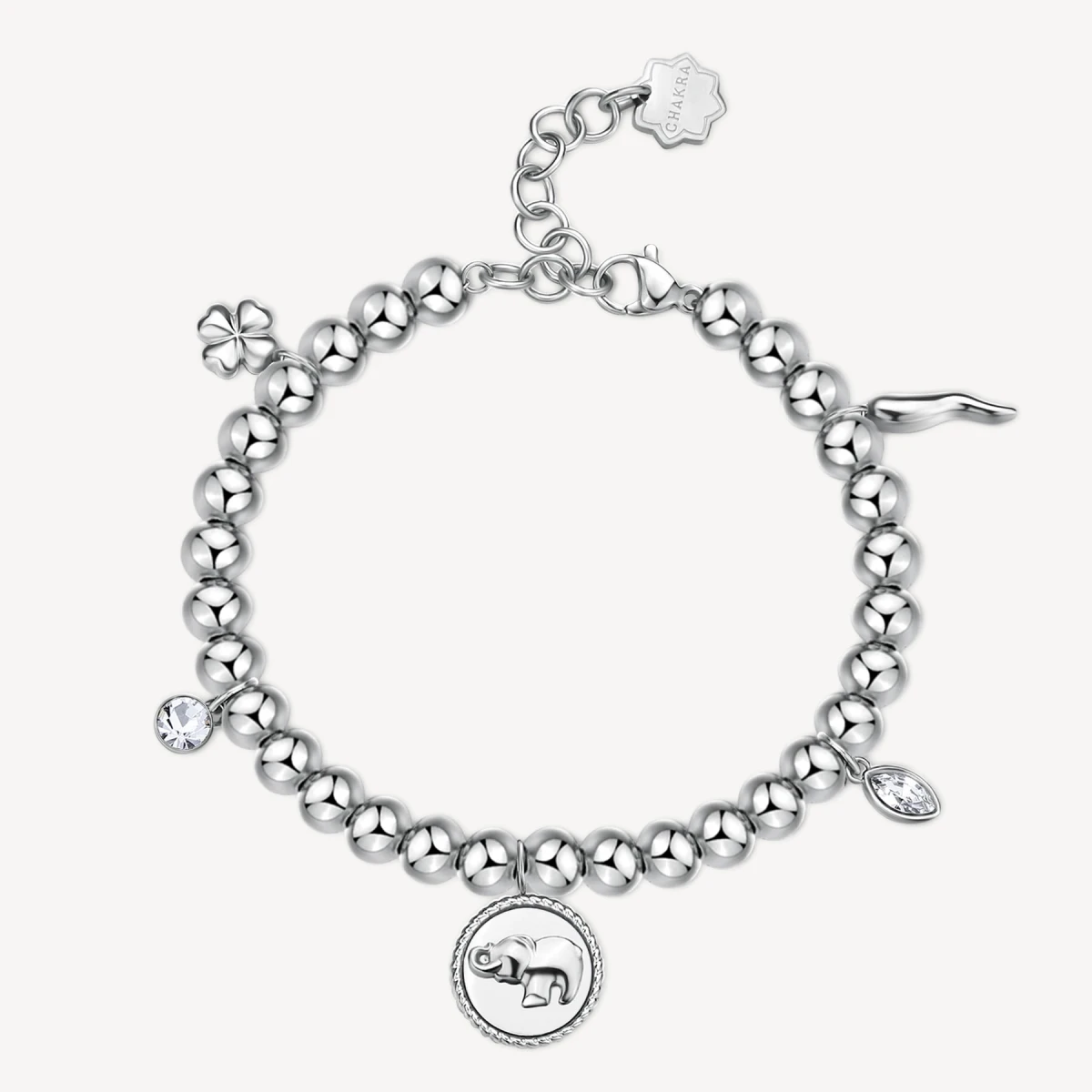 Dámský náramek z chirurgické oceli z kolekce Chakra. Povrch náramku je leštěný. Náramek je osazený prvotřídními zirkony. Zapínání náramku je karabinové. Délka náramku 20cm.