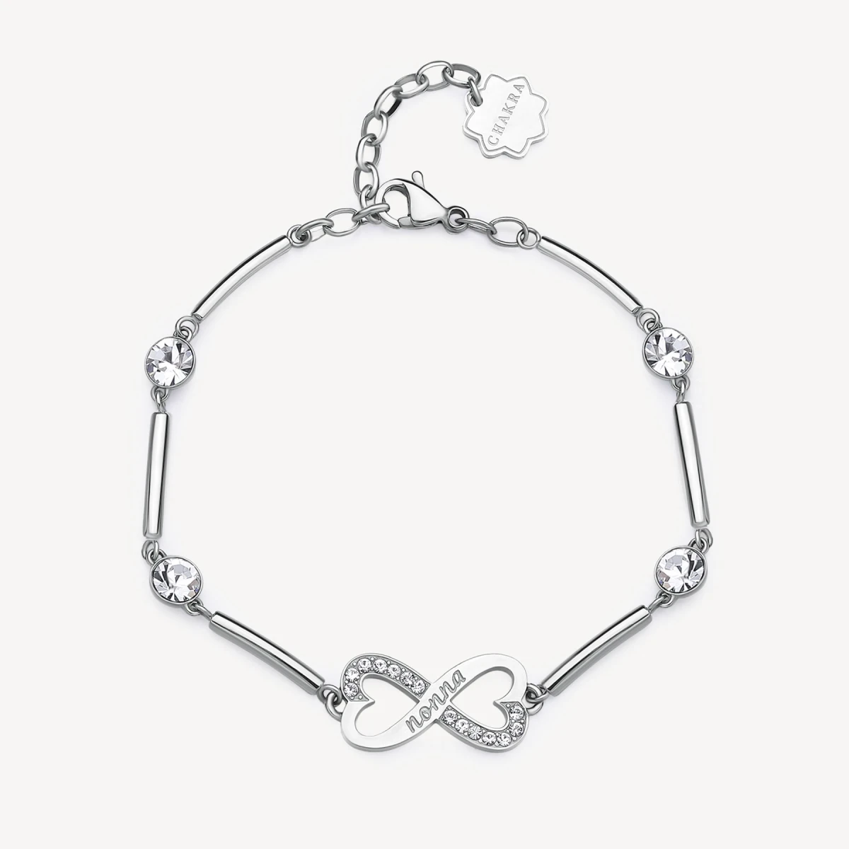 Dámský náramek z chirurgické oceli z kolekce Chakra. Povrch náramku je leštěný. Náramek je osazený prvotřídními zirkony. Zapínání náramku je karabinové. Délka náramku 18,5cm.