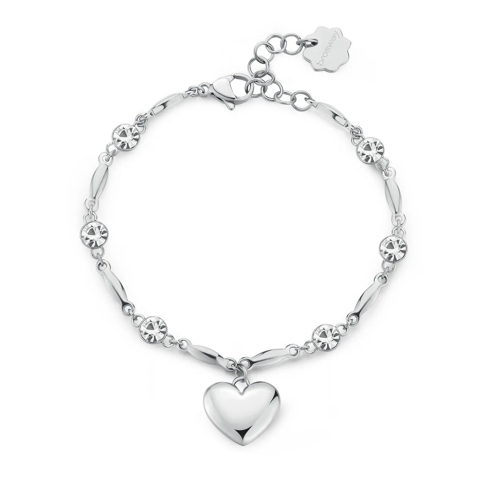 Náramek Brosway z kolekce CHAKRA zdobený přívěskem srdce a krystaly je vyrobený z chirurgické oceli 316L. Šperky vyrobené z chirurgické oceli jsou odolné proti poškrábání, nemění barvu, neoxidují, nevyvolávají alergické reakce ani nereagují na pot a prach. Zapínání náramku je na karabinku. Délka náramku je 18 cm.
