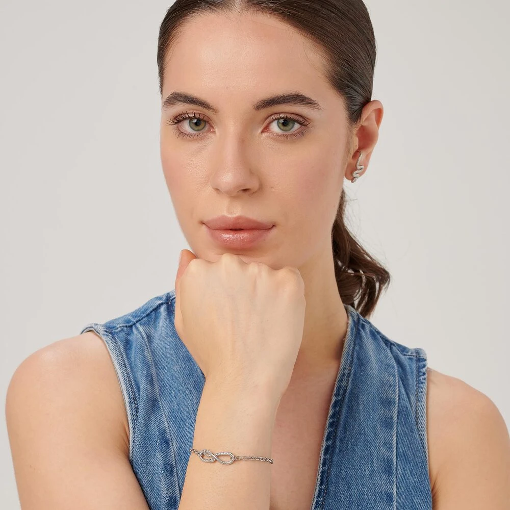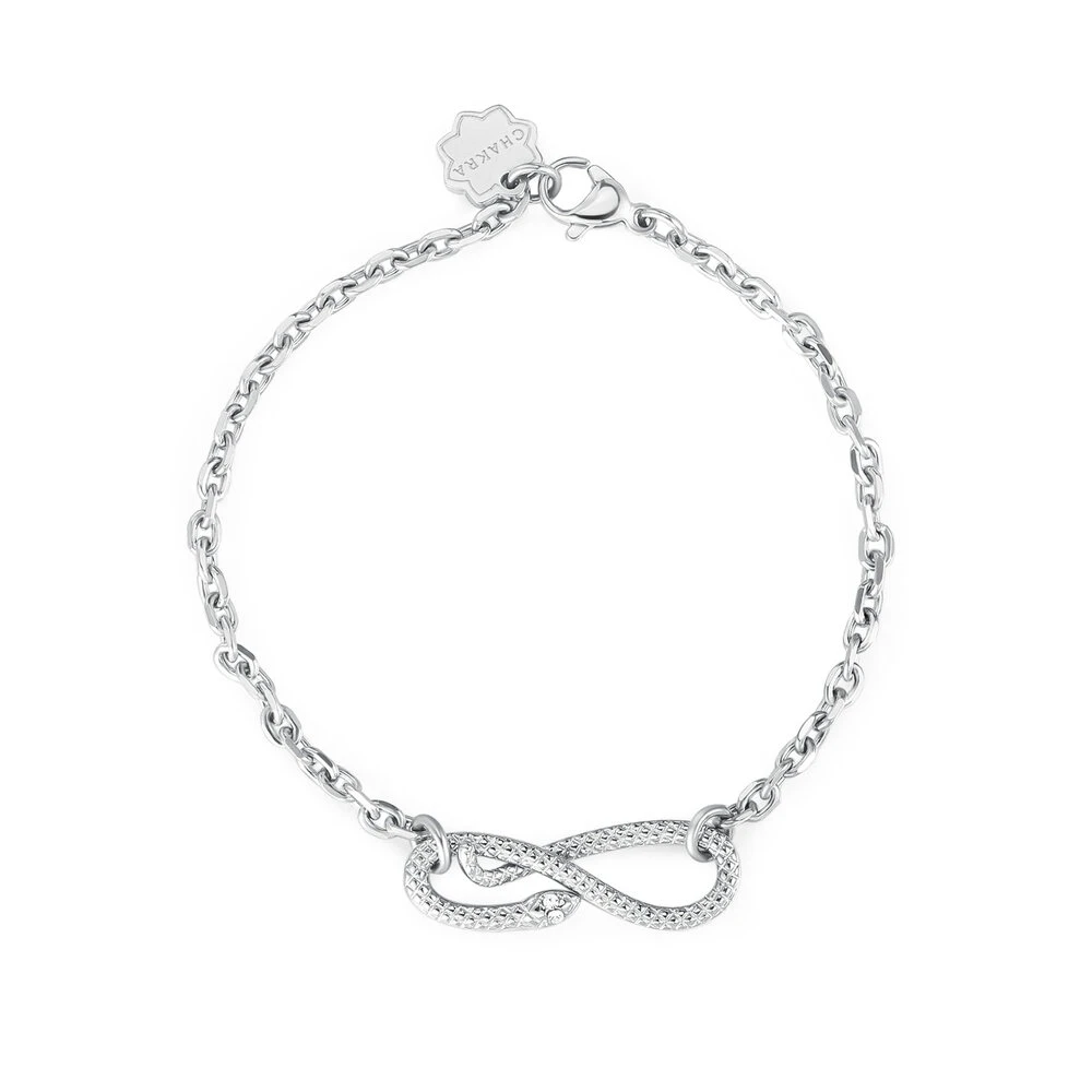 Náramek z chirurgické oceli se symbolem nekonečna. Symbol nekonečna tvoří had se dvěma zirkony. Povrch náramku je leštěný. Délka náramku 18 cm. Zapínání náramku je karabinové.