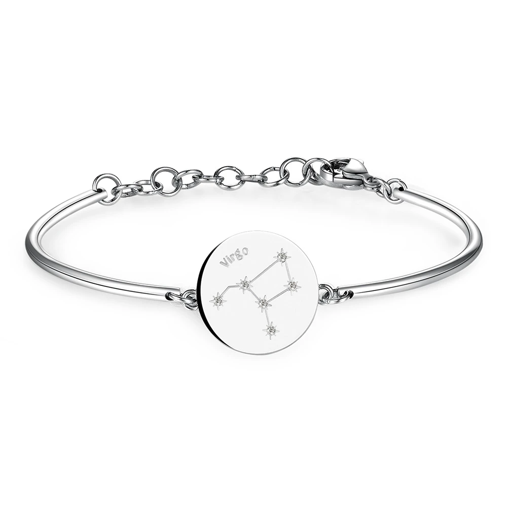 Náramek z chirurgické oceli Brosway se znamením Panna (23.8-22.9). Povrch náramku je leštěný. Hvězdy ze souhvězdí jsou zastoupeny zářivými krystalky Swarovski. Ozdobná část náramku se znamením má průměr 17 mm. Náramek má karabinové zapínání. Délku náramku lze plynule nastavit v rozmezí 15-18 cm.