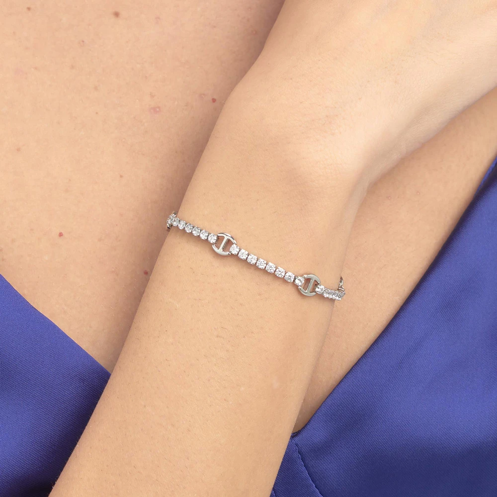 Tenisový náramek z chirurgické oceli řady Desideri. Náramek je zdobený zářivými zirkony. Povrch náramku je leětěný. Délka náramku 18CM. Zapínání náramku je karabinové.
