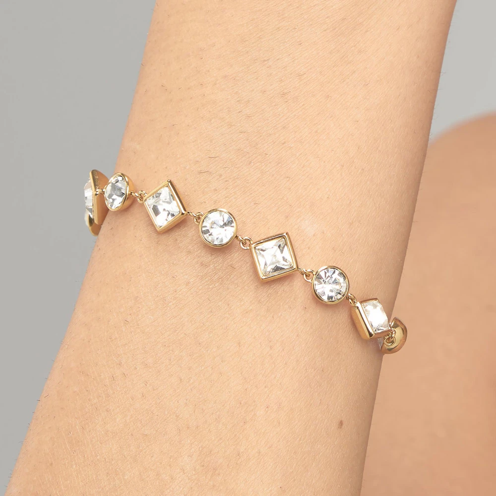 Dámský náramek z chirurgické oceli 316L ozdobený zářivými krystaly.Povrch náramku je pozlacený technologií PVD. Délka náramku 18cm.